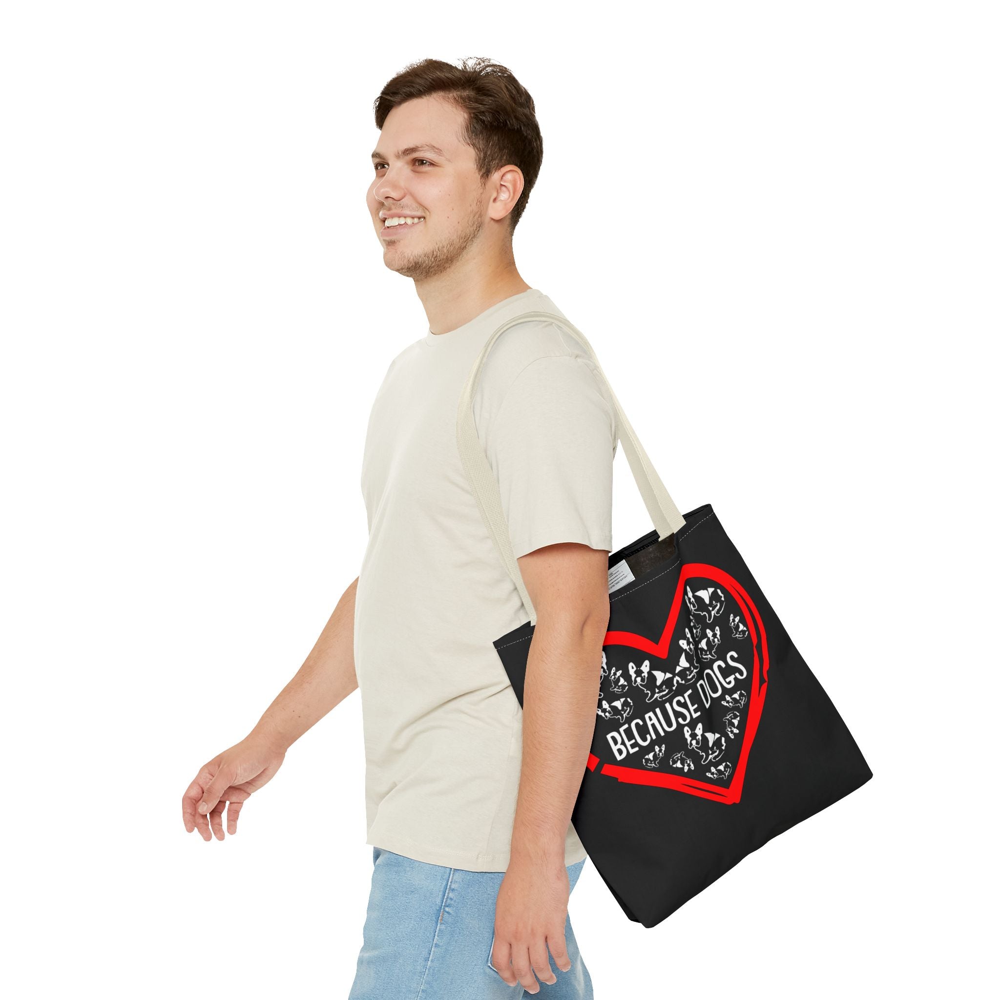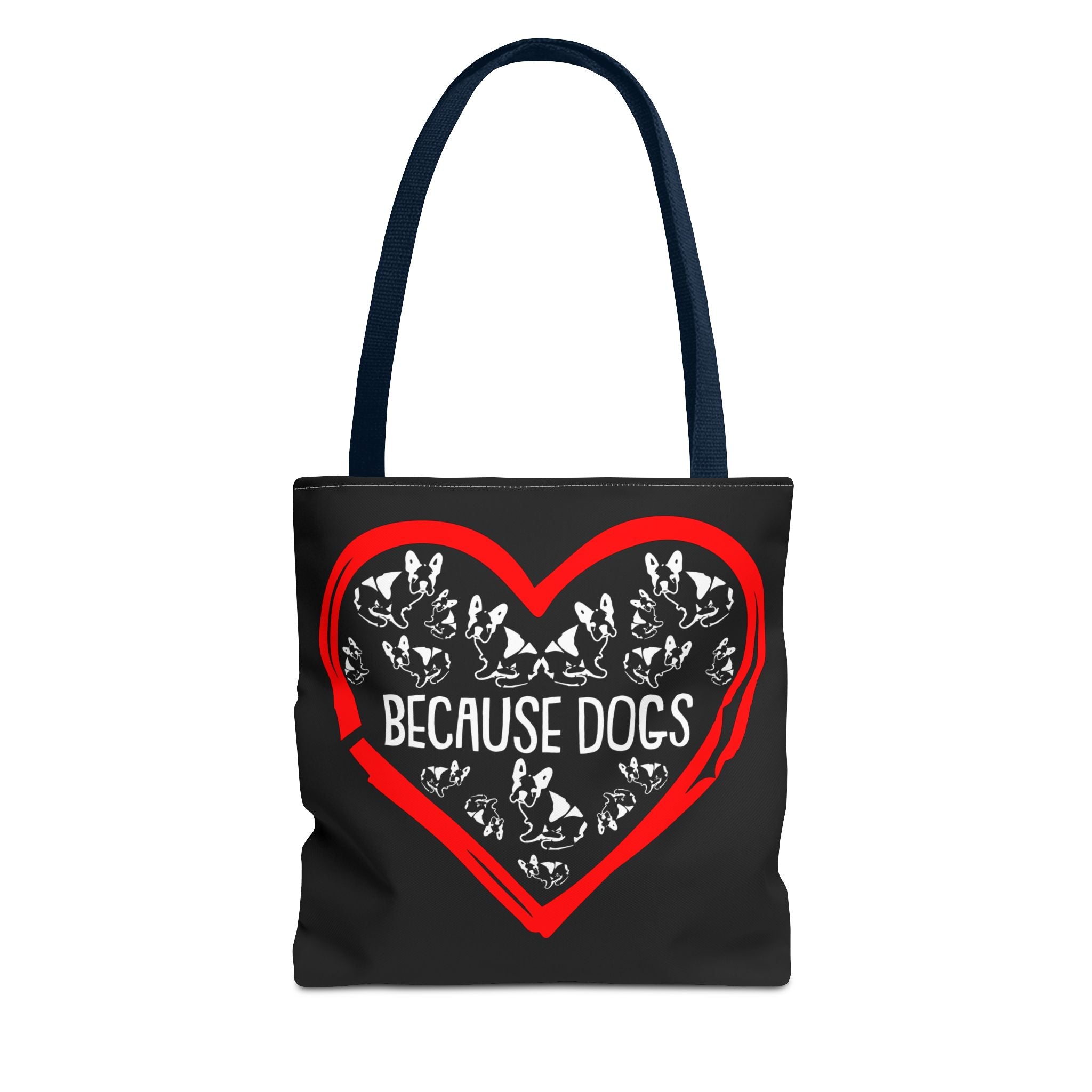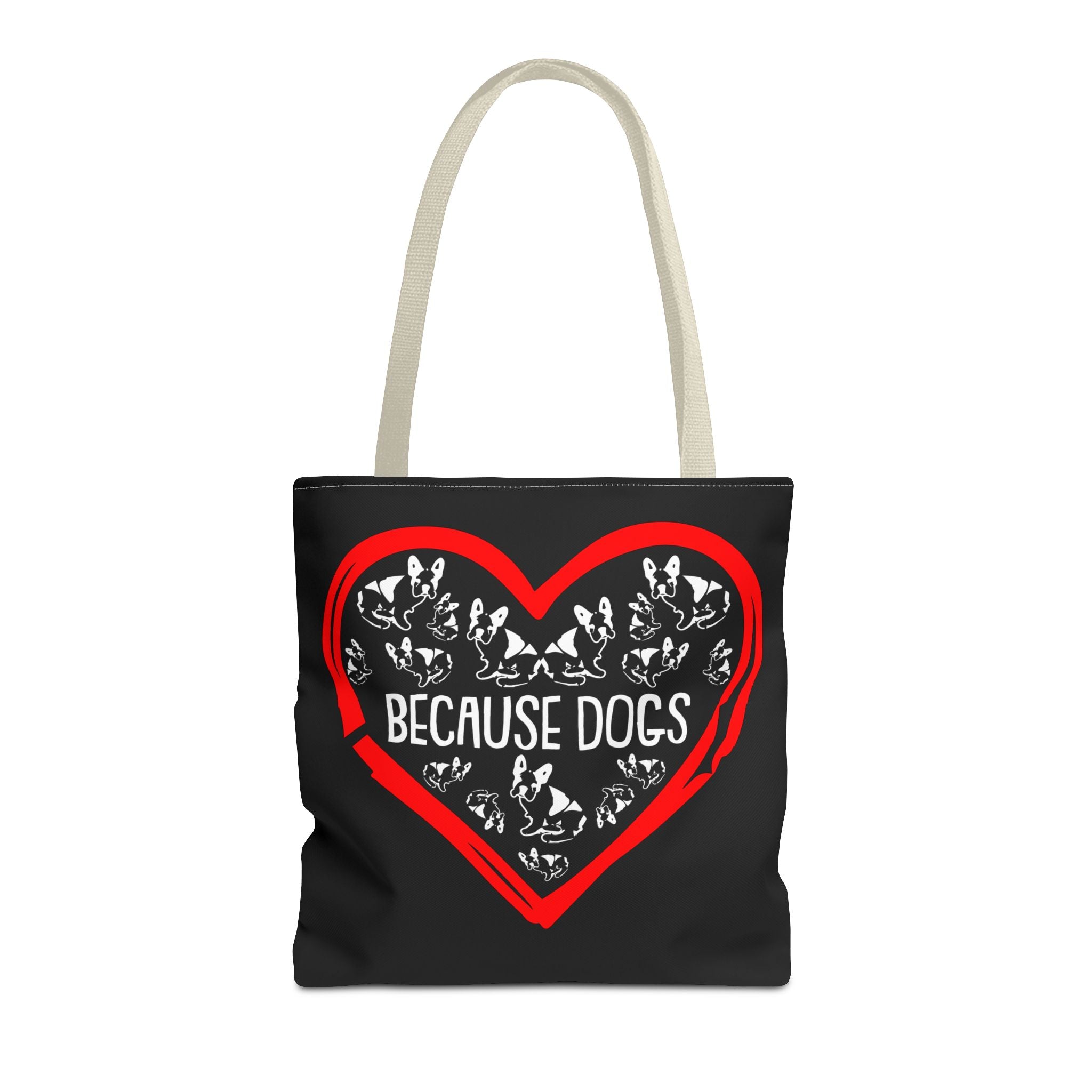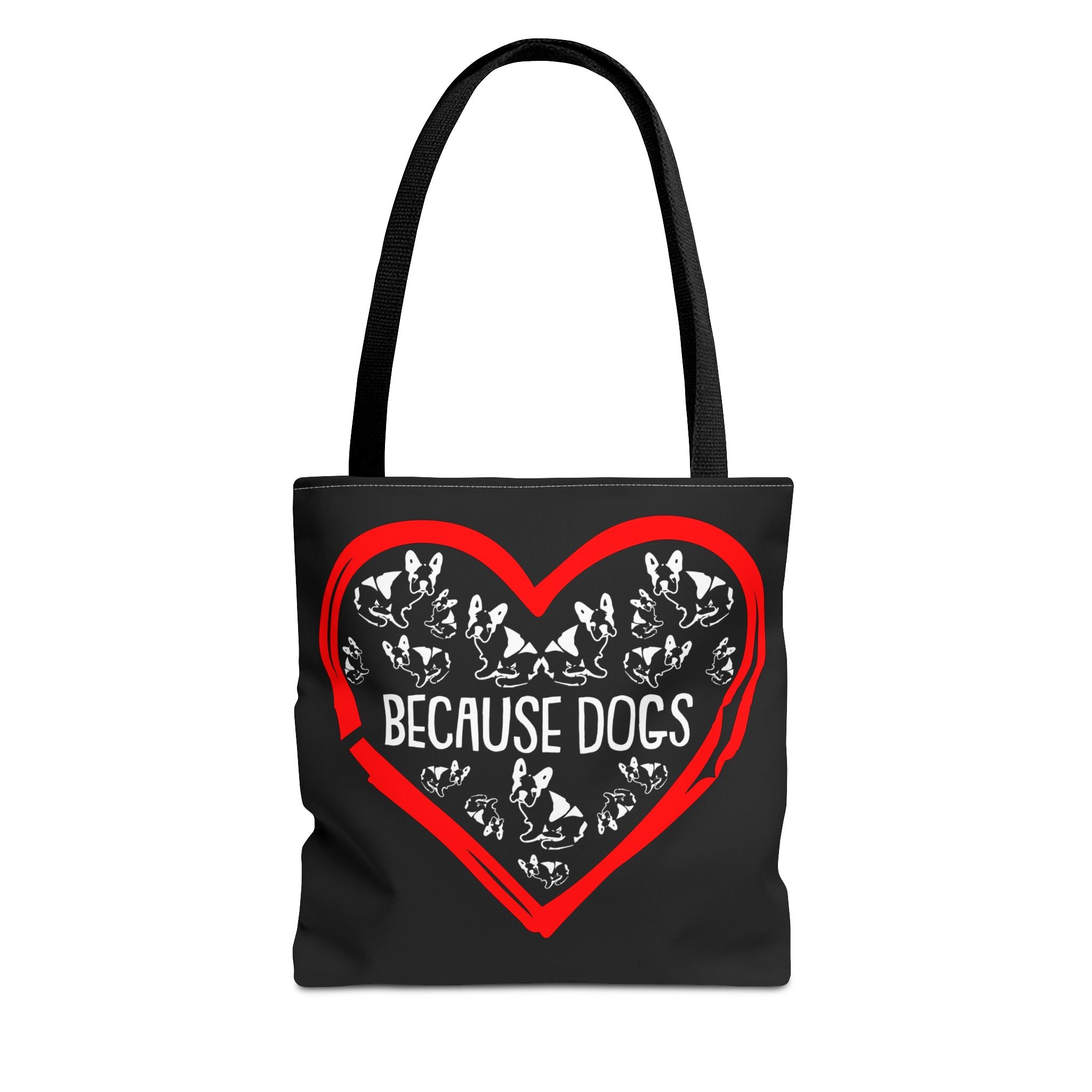 Because Dogs Tote Bag – Cute Dog Lover's Black Tote for Everyday Use