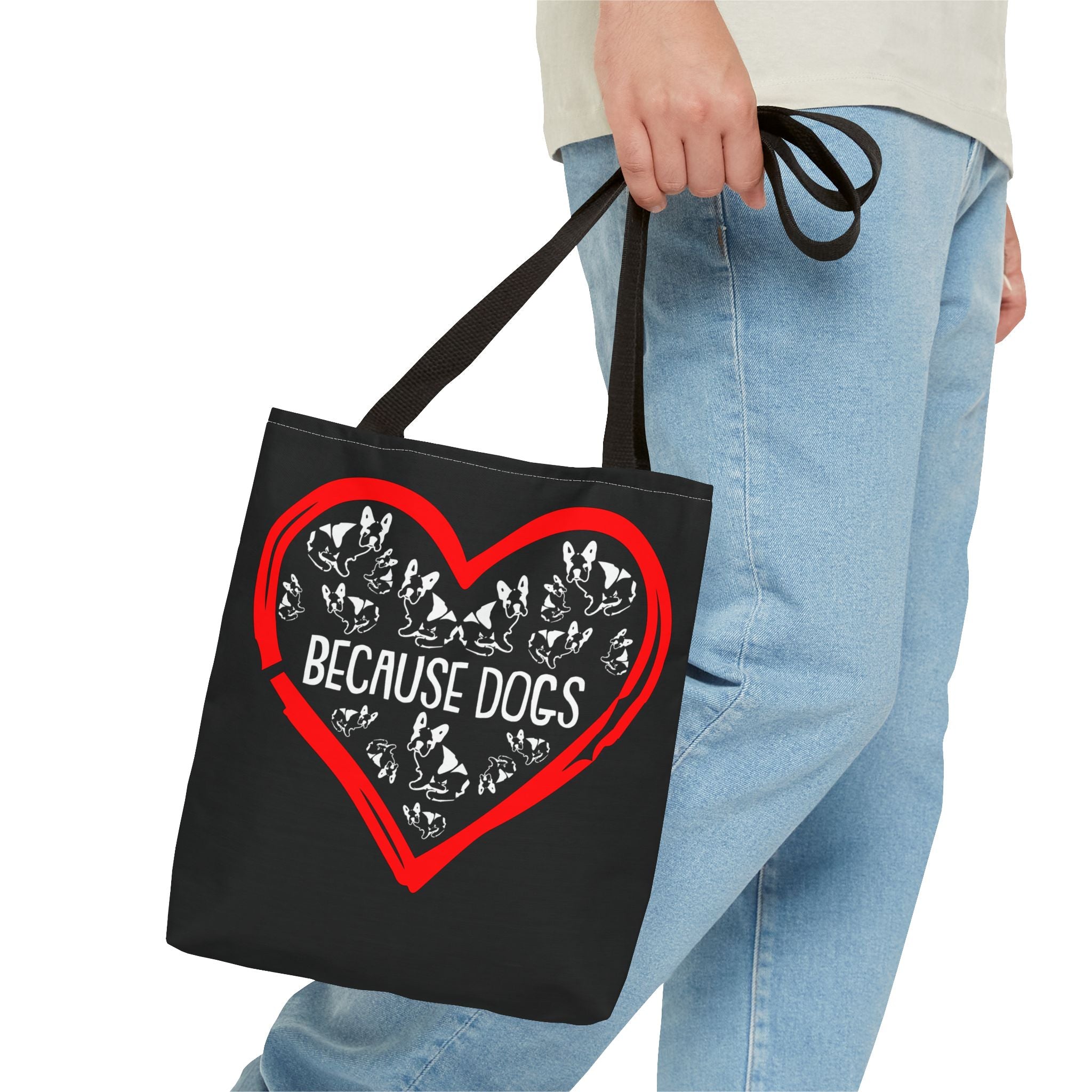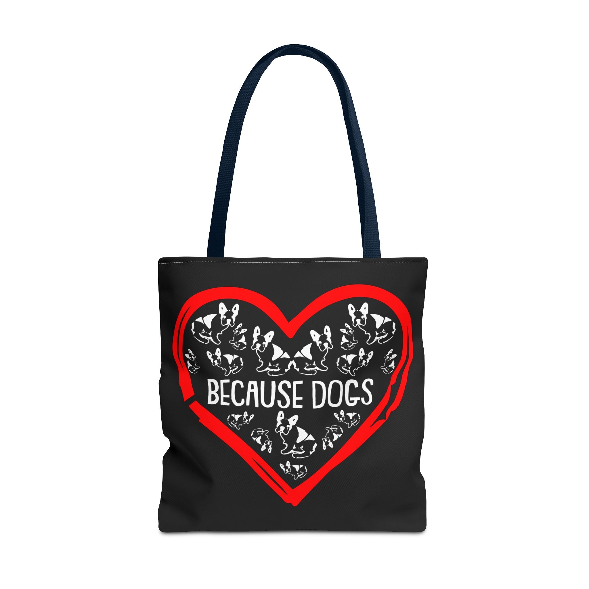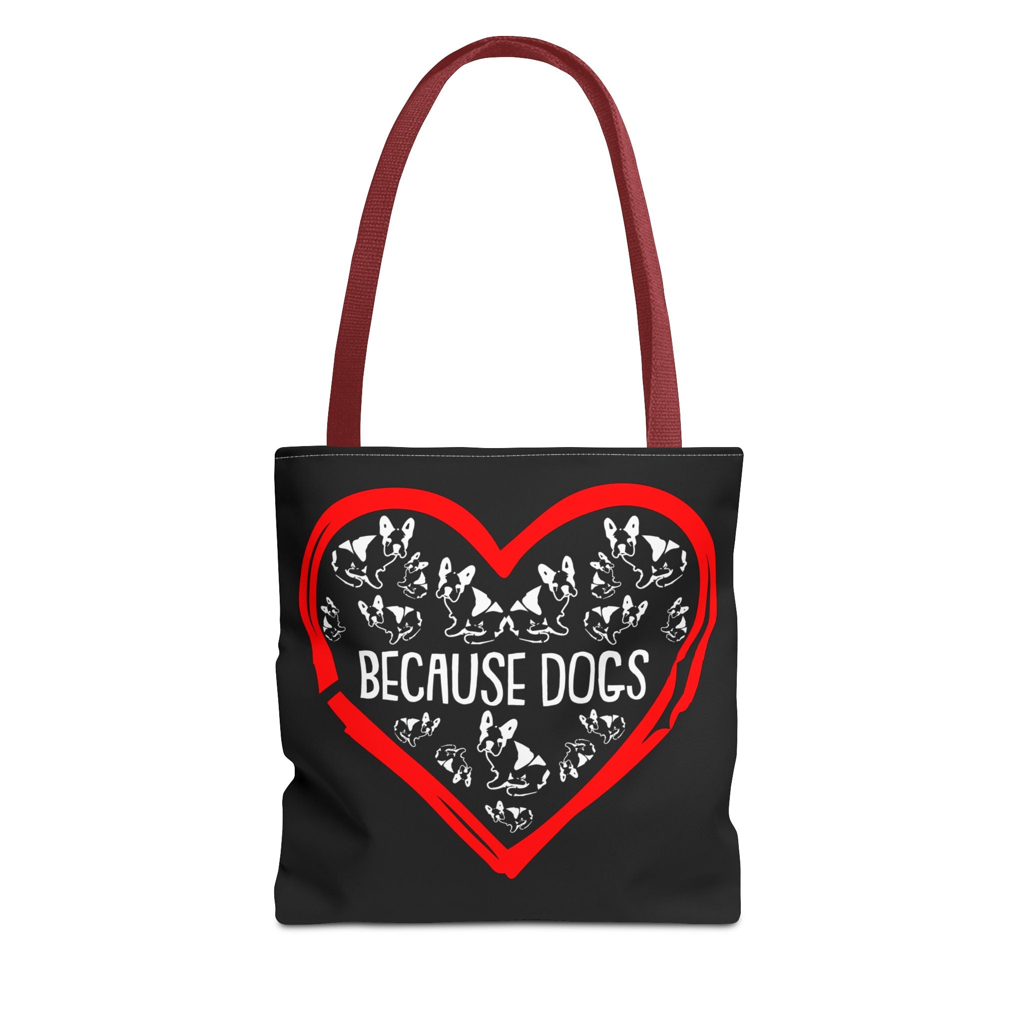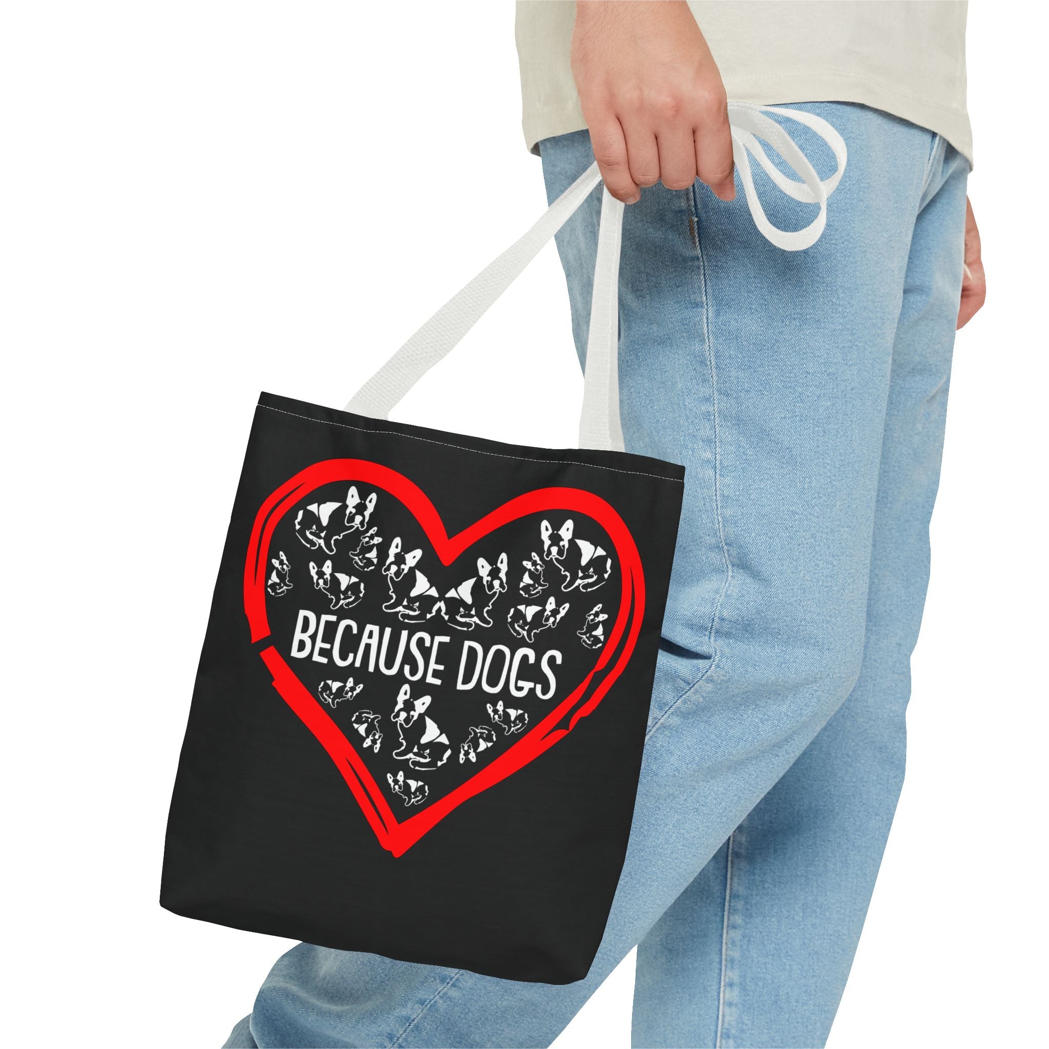 Because Dogs Tote Bag – Cute Dog Lover's Black Tote for Everyday Use