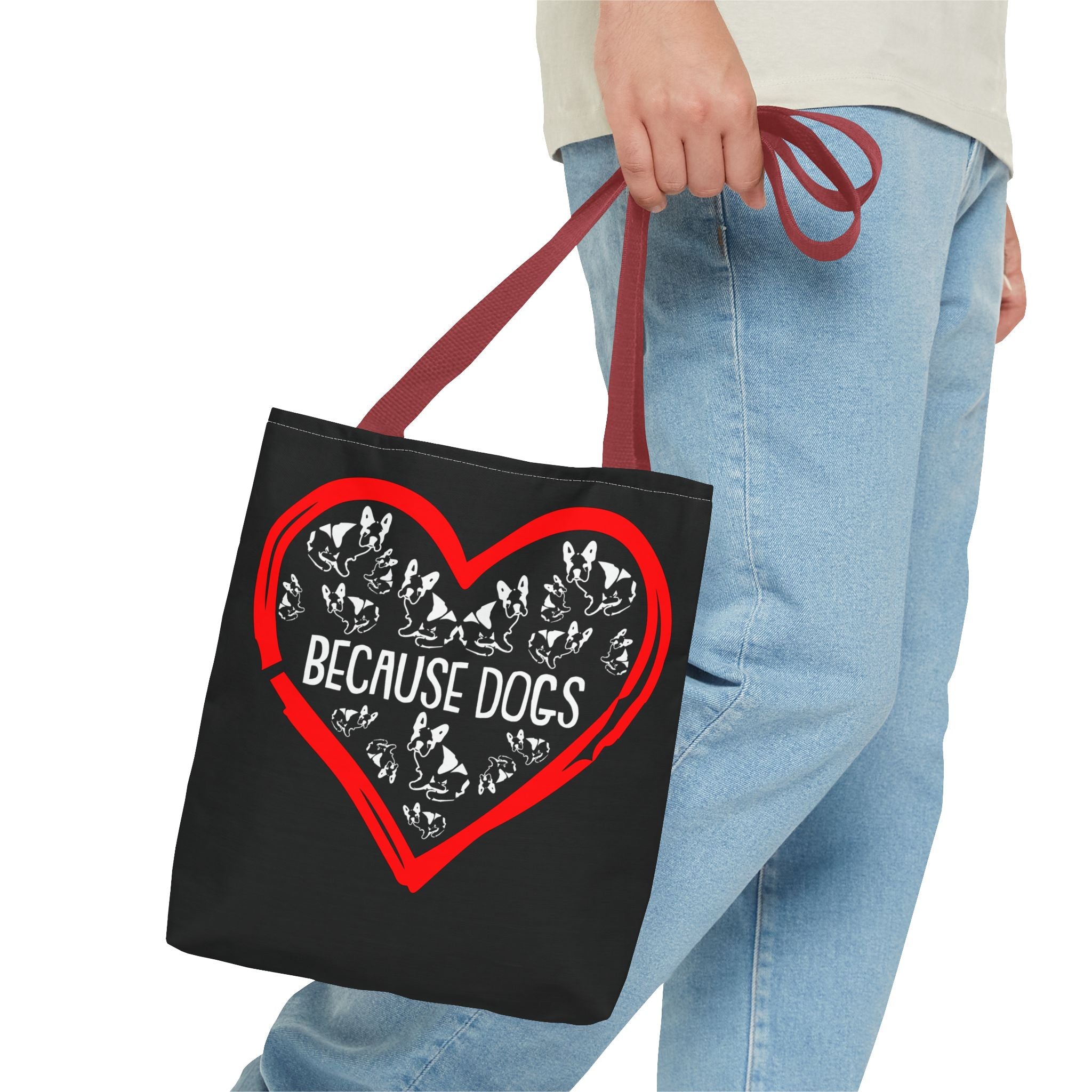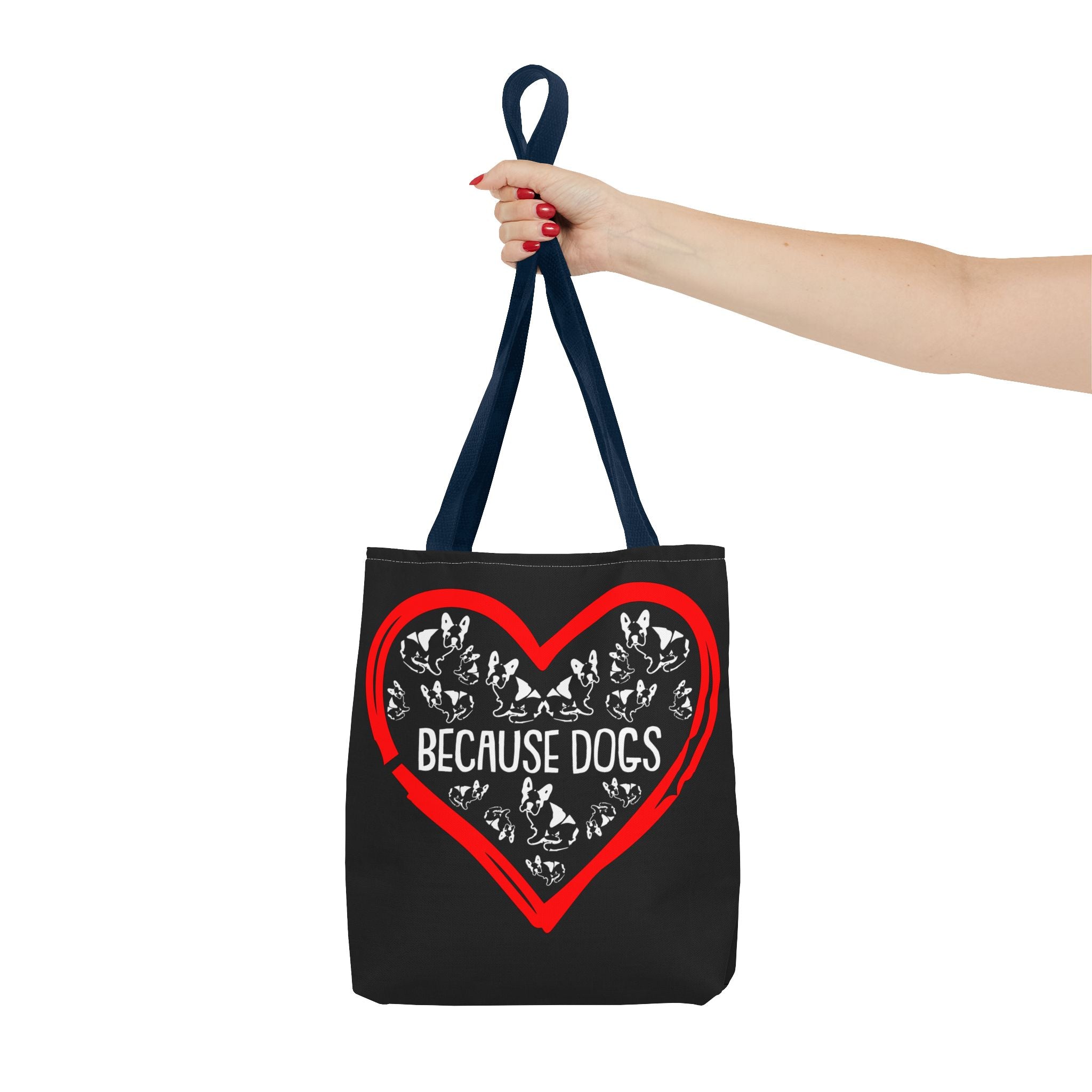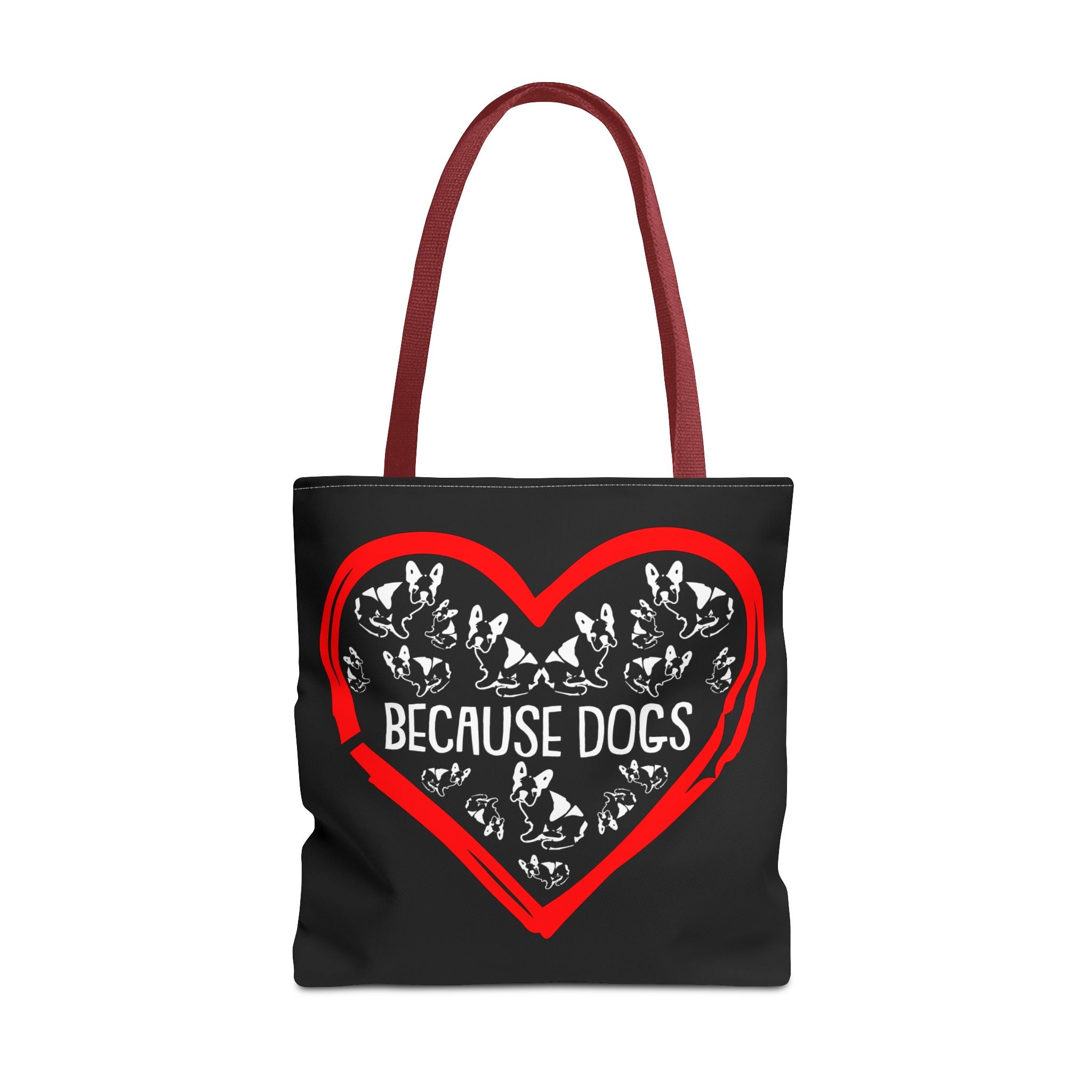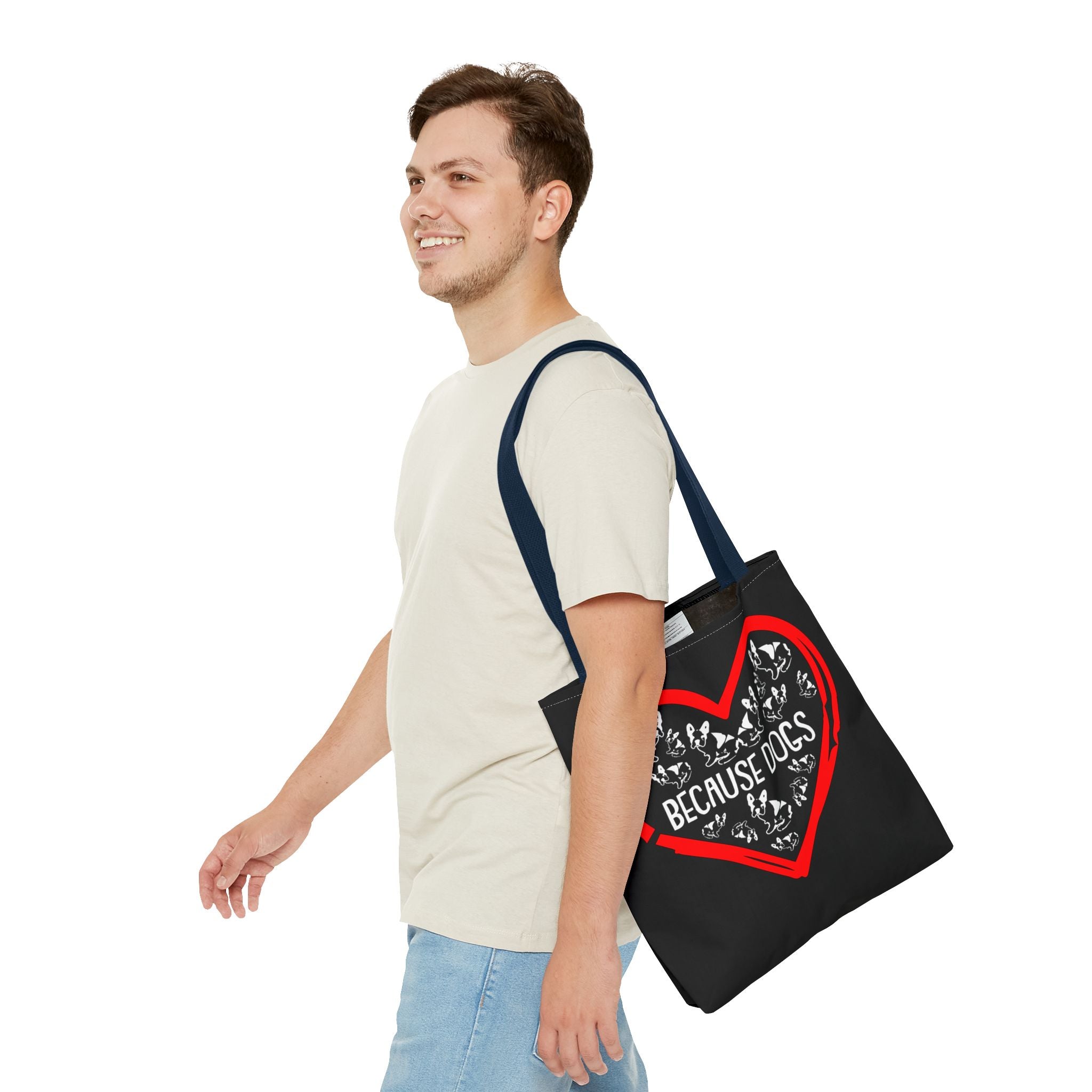 Because Dogs Tote Bag – Cute Dog Lover's Black Tote for Everyday Use