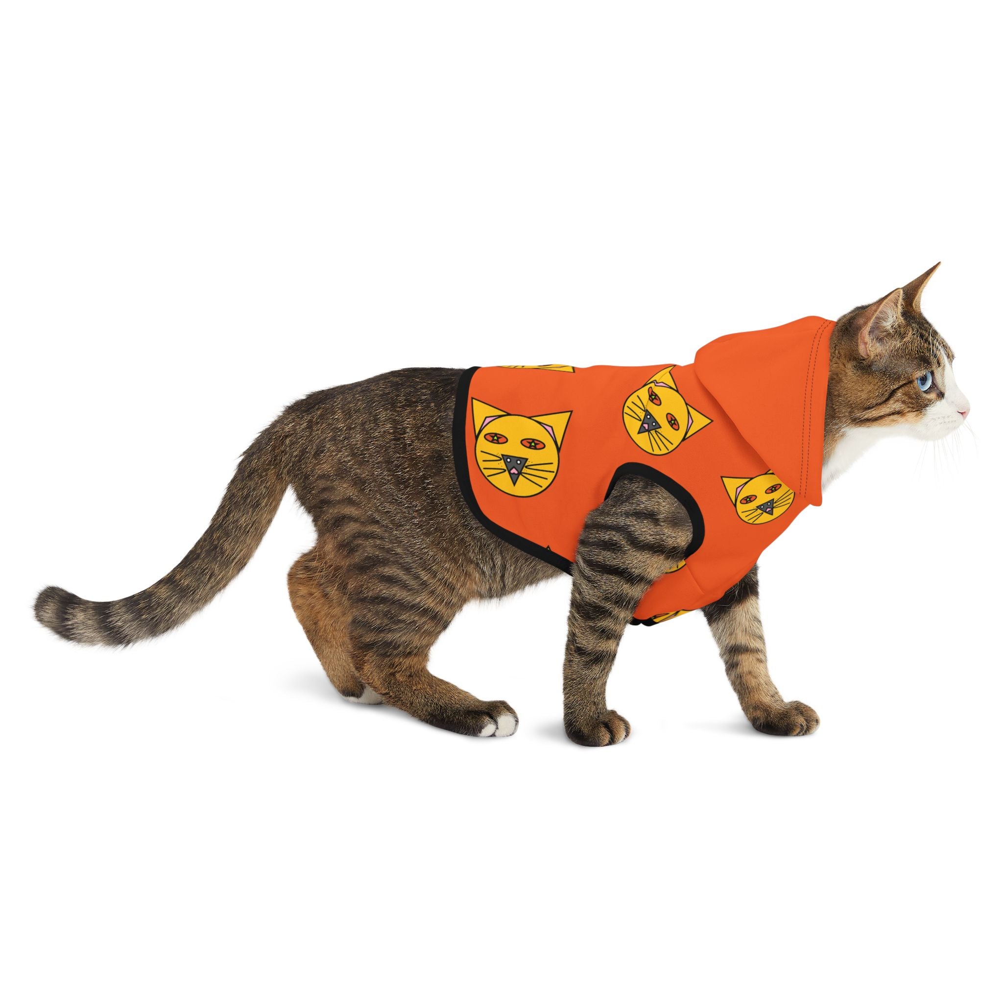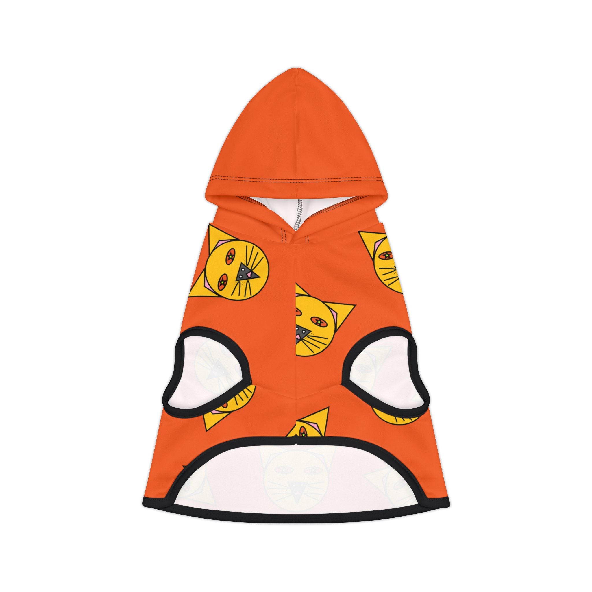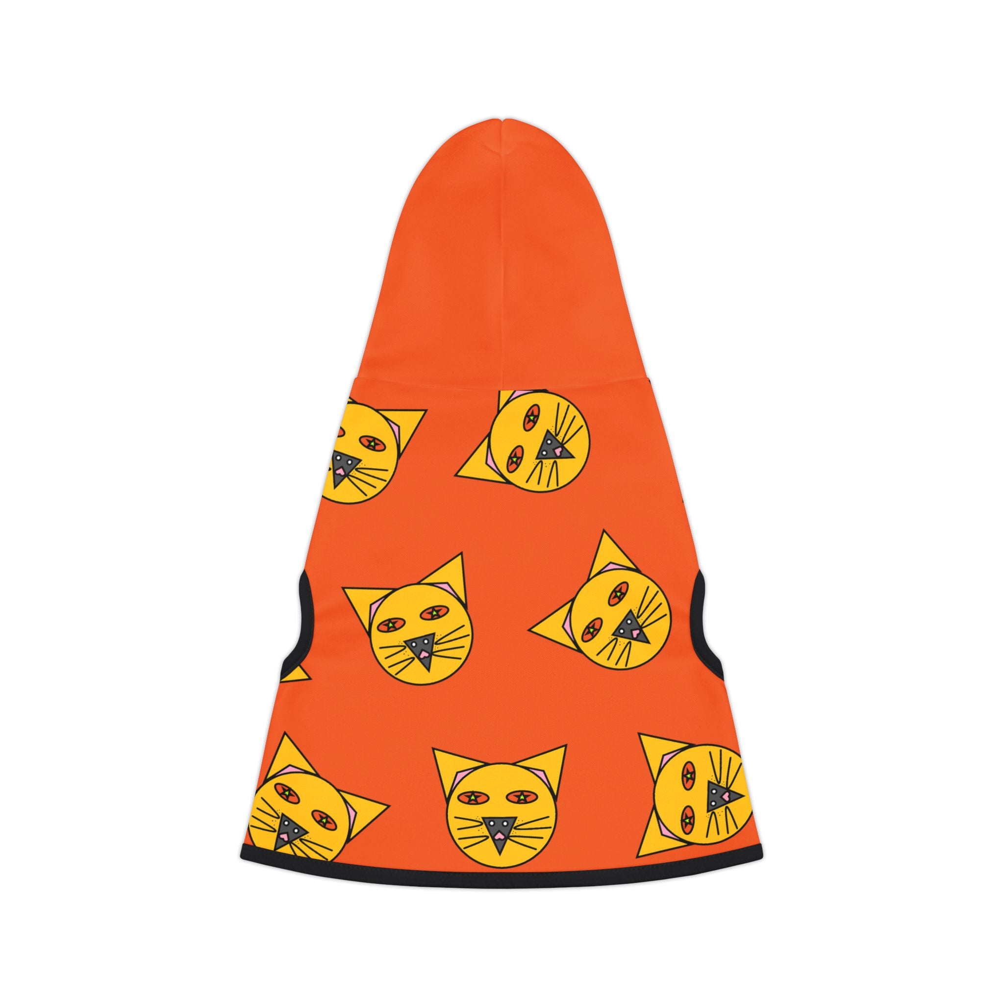 Adorable Candy corn kitty Halloween costume pet hoodie perfect for dressing up your furry friend for the spooky season. This custom pet hoodie is made with 100% soft polyester and available in 7 different sizes. Seam thread color automatically matched to design (black or white). Ideal for pet owners looking to include their furry companions in Halloween celebrations.