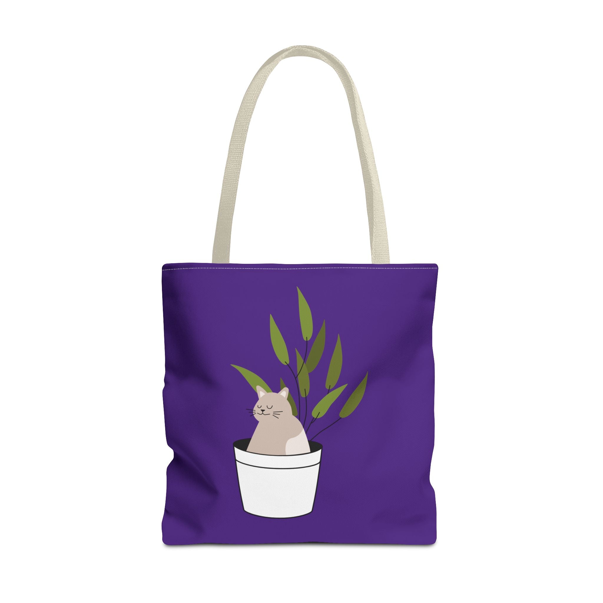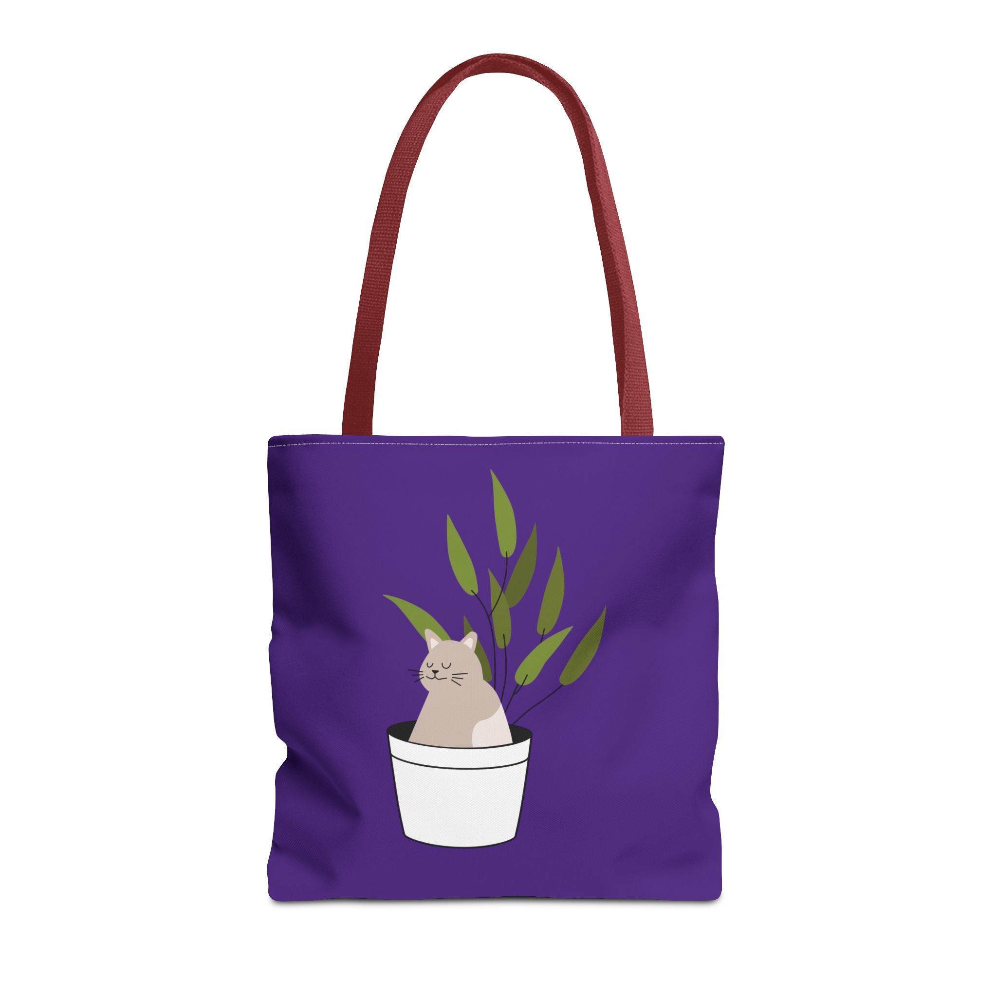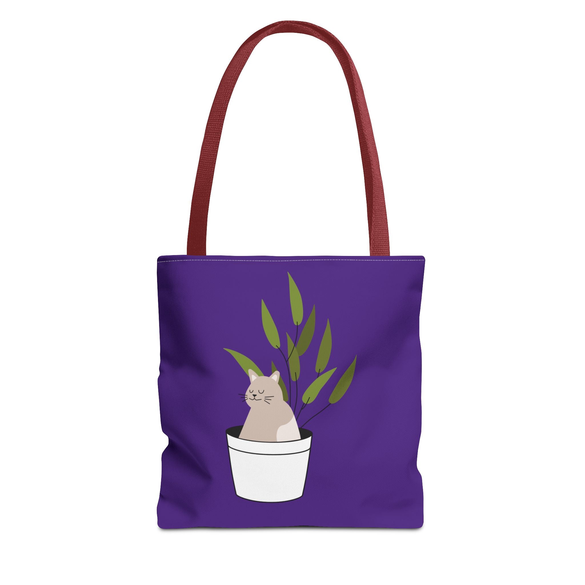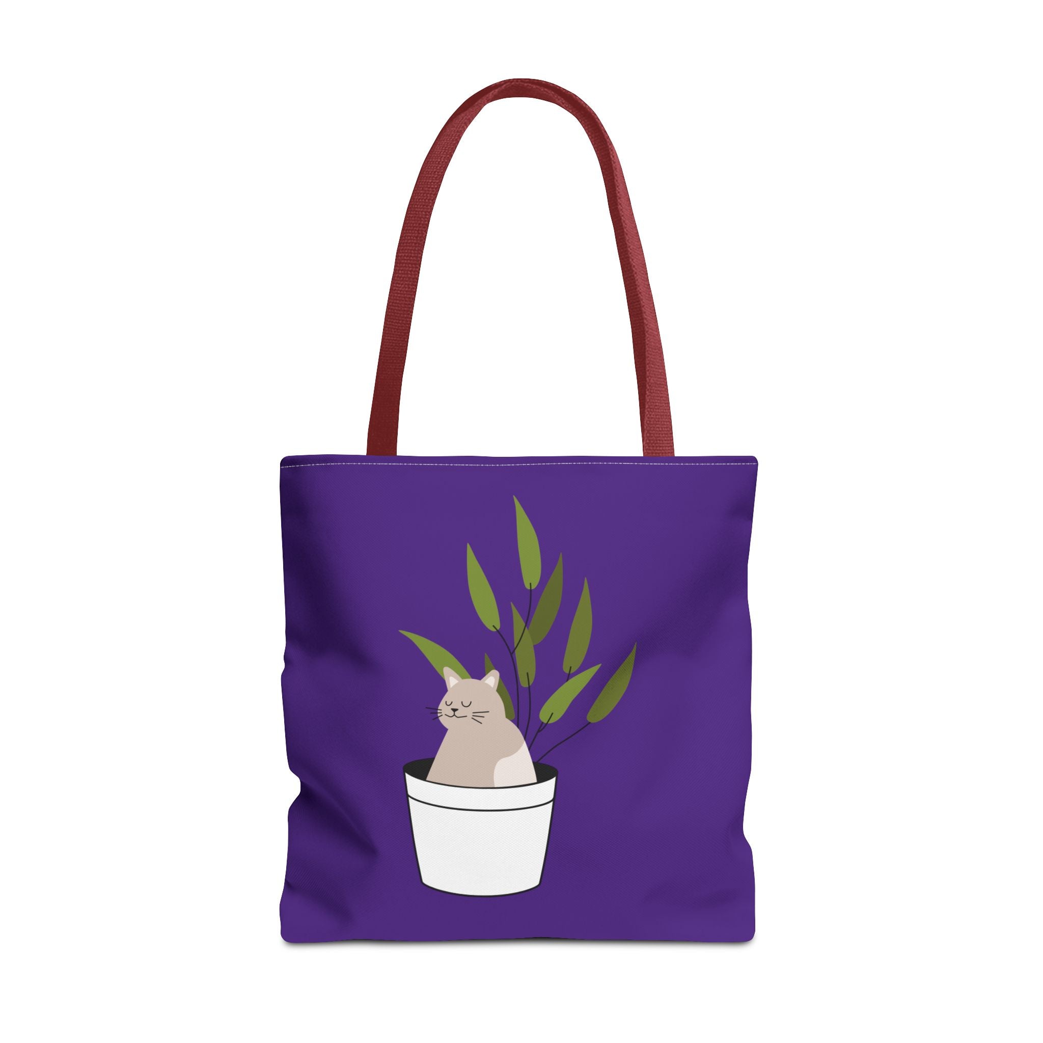 Cute Cat in Plant Tote Bag - Purple Floral Eco-Friendly Bag for Cat Lovers