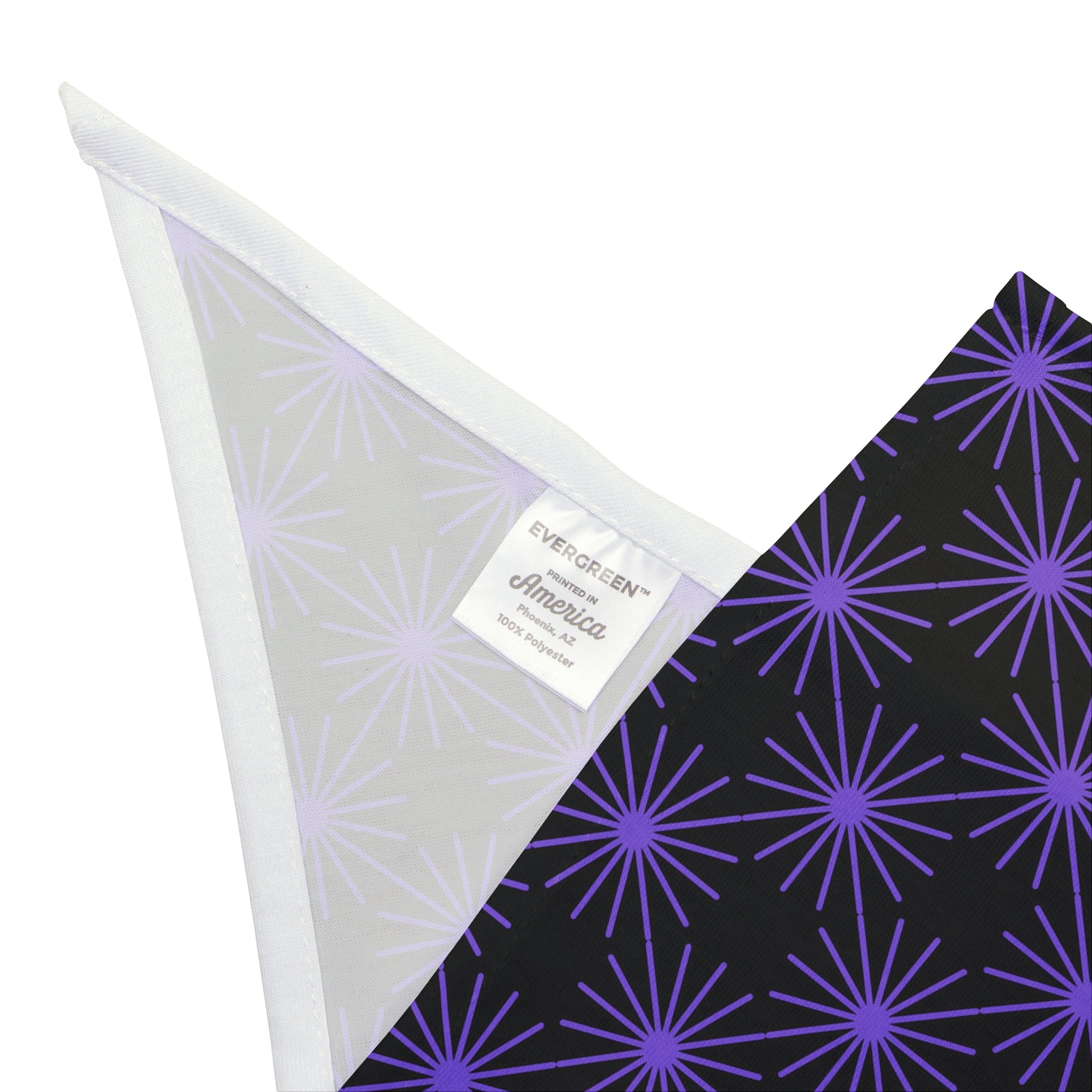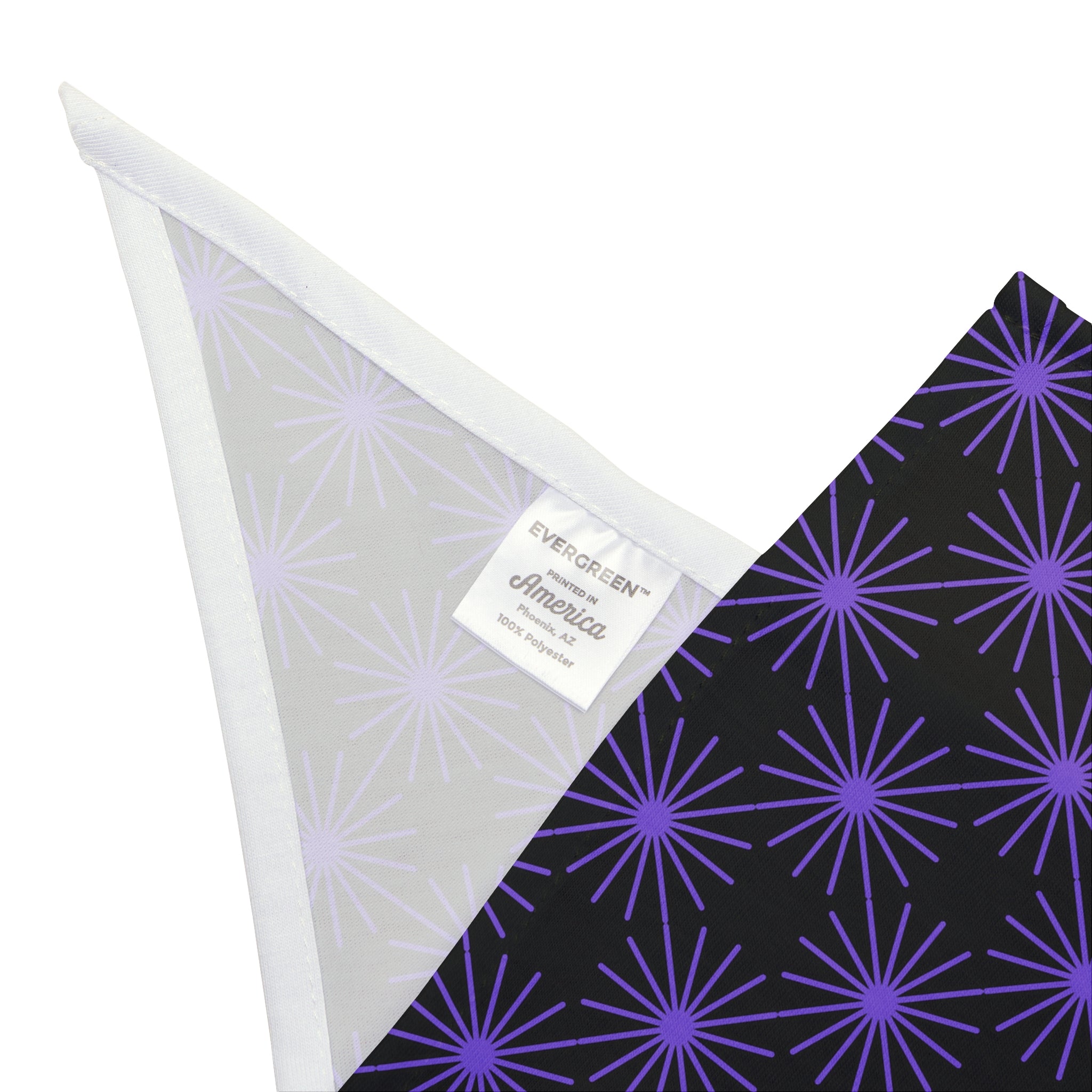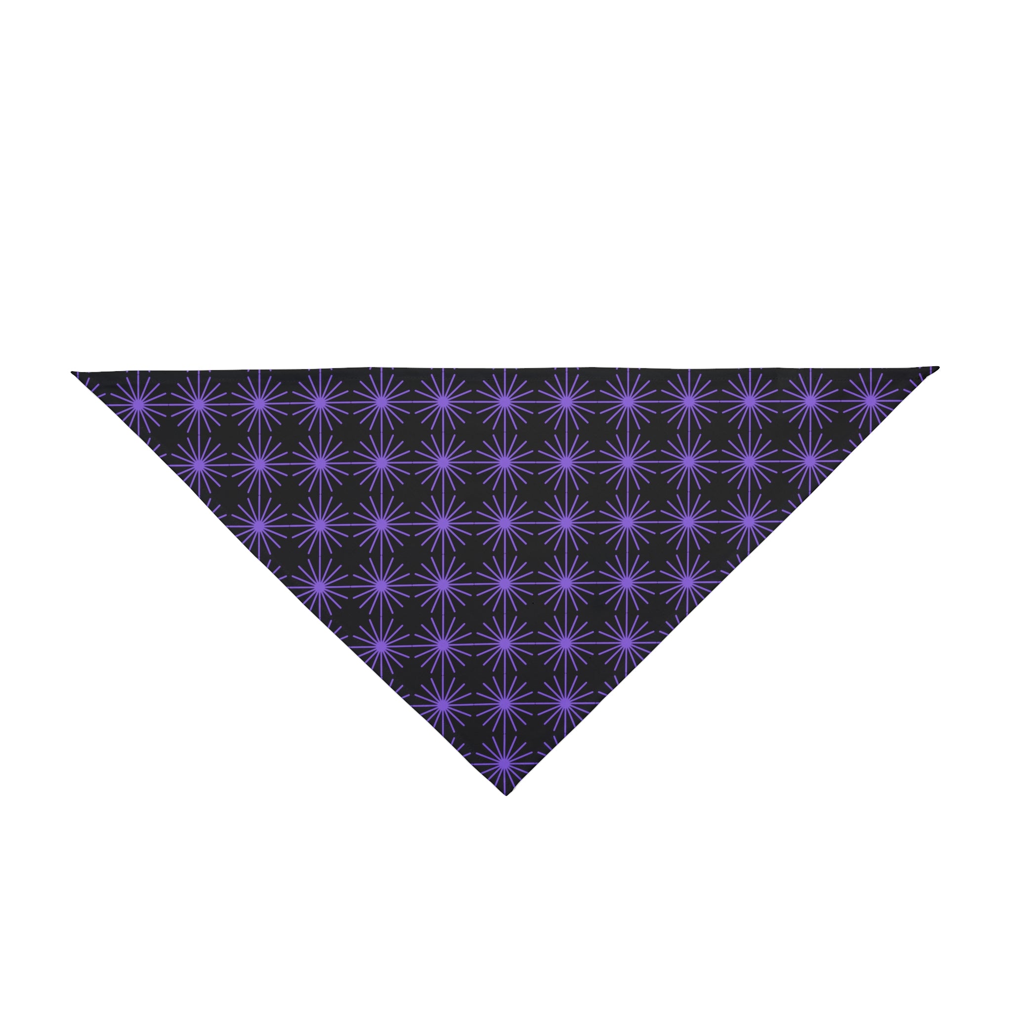 The purple and black pet bandana a fantastic accessory to add flair and personality to pets. Made from soft-spun polyester, it's designed not to bunch up or cause irritation to your pet's skin, ensuring comfort. This bandana not only enhances your pet's appearance but also adds a touch of individuality, making it a great choice for pet owners looking to personalize their furry friend's look.