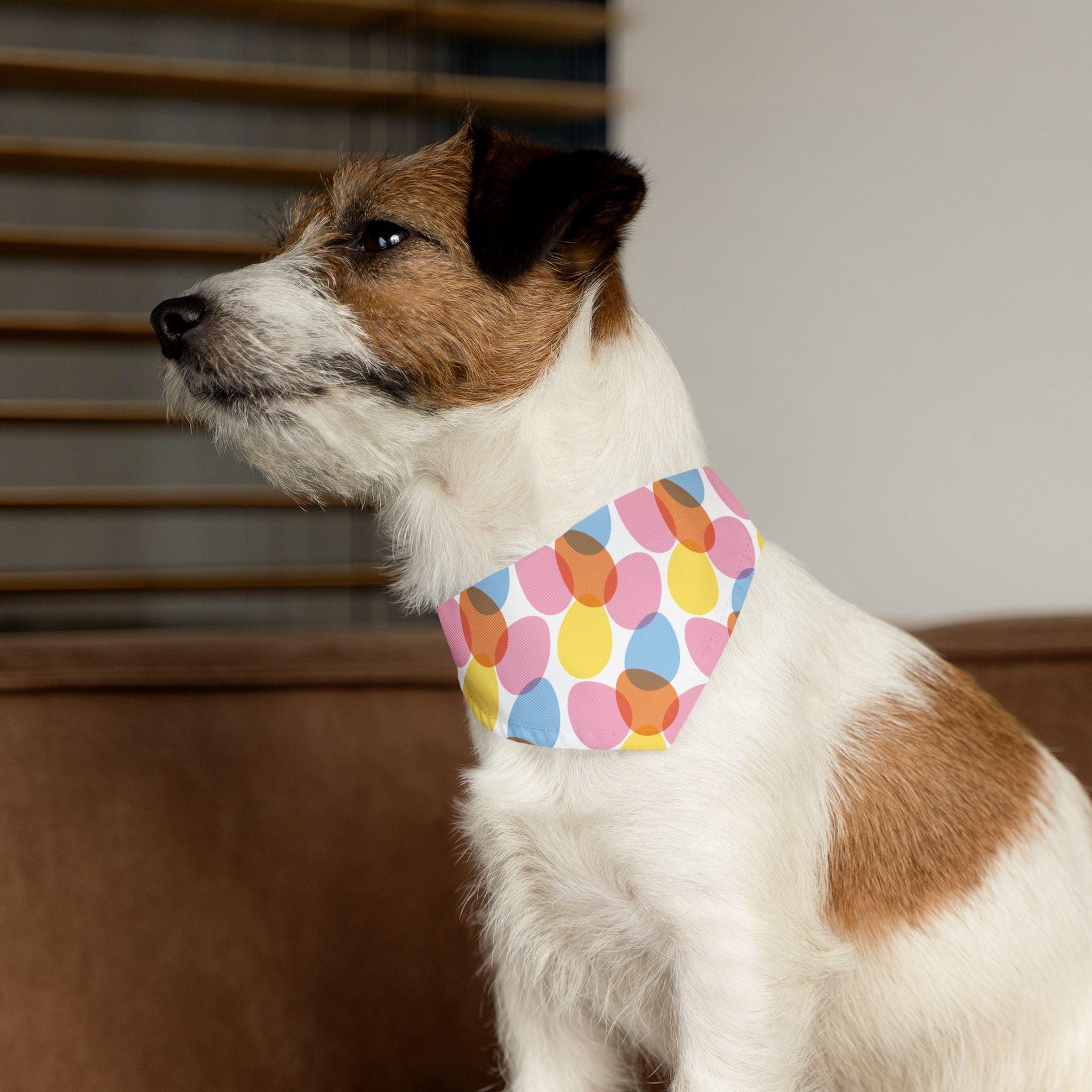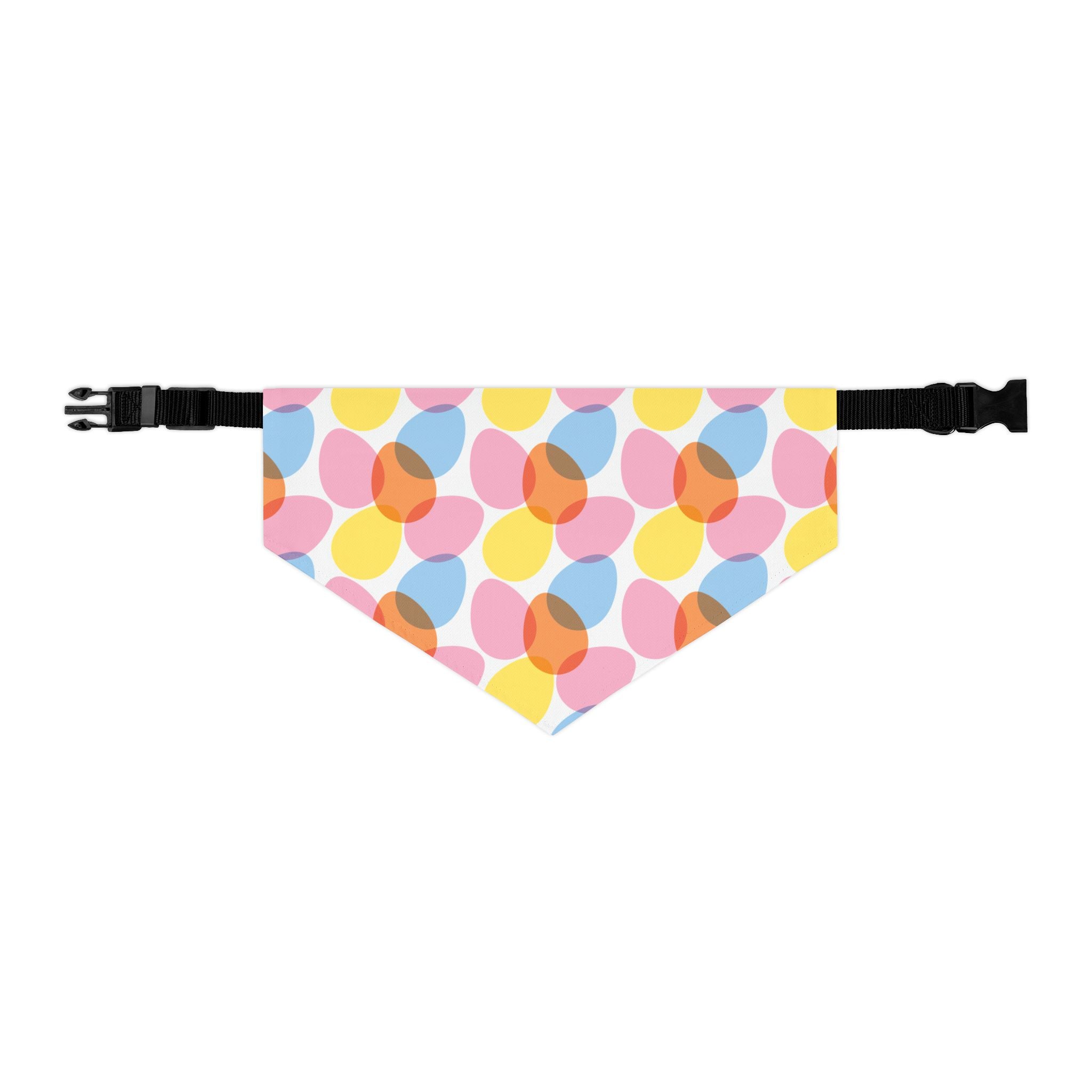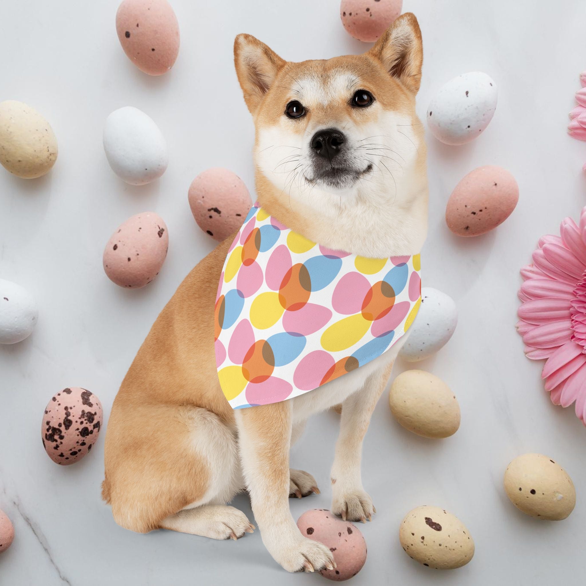 Vibrant and playful colorful easter egg pet bandana perfect for celebrating Easter with your furry friend. This adjustable collar is made of durable polyester, ensuring a comfortable and secure fit for your pet. Ideal for pet owners looking to include their pets in the holiday festivities.