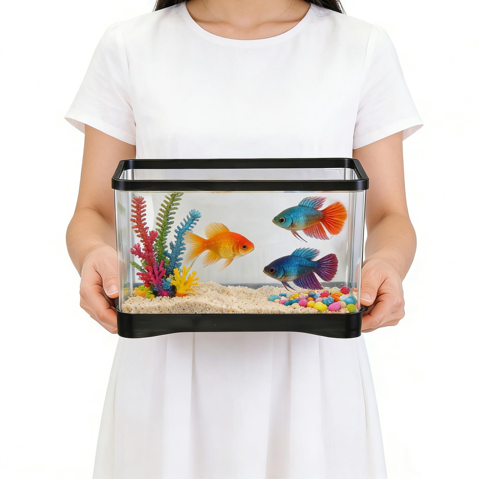 - Ideal Size: The plastic fish tank measures approximately 12 x 7 x 7.5 inches; its suitable size is perfect for creating a relaxing aquarium at home, office, or classroom; its lightweight design makes it easy to move around, allowing you to easily transport it indoors or outdoors