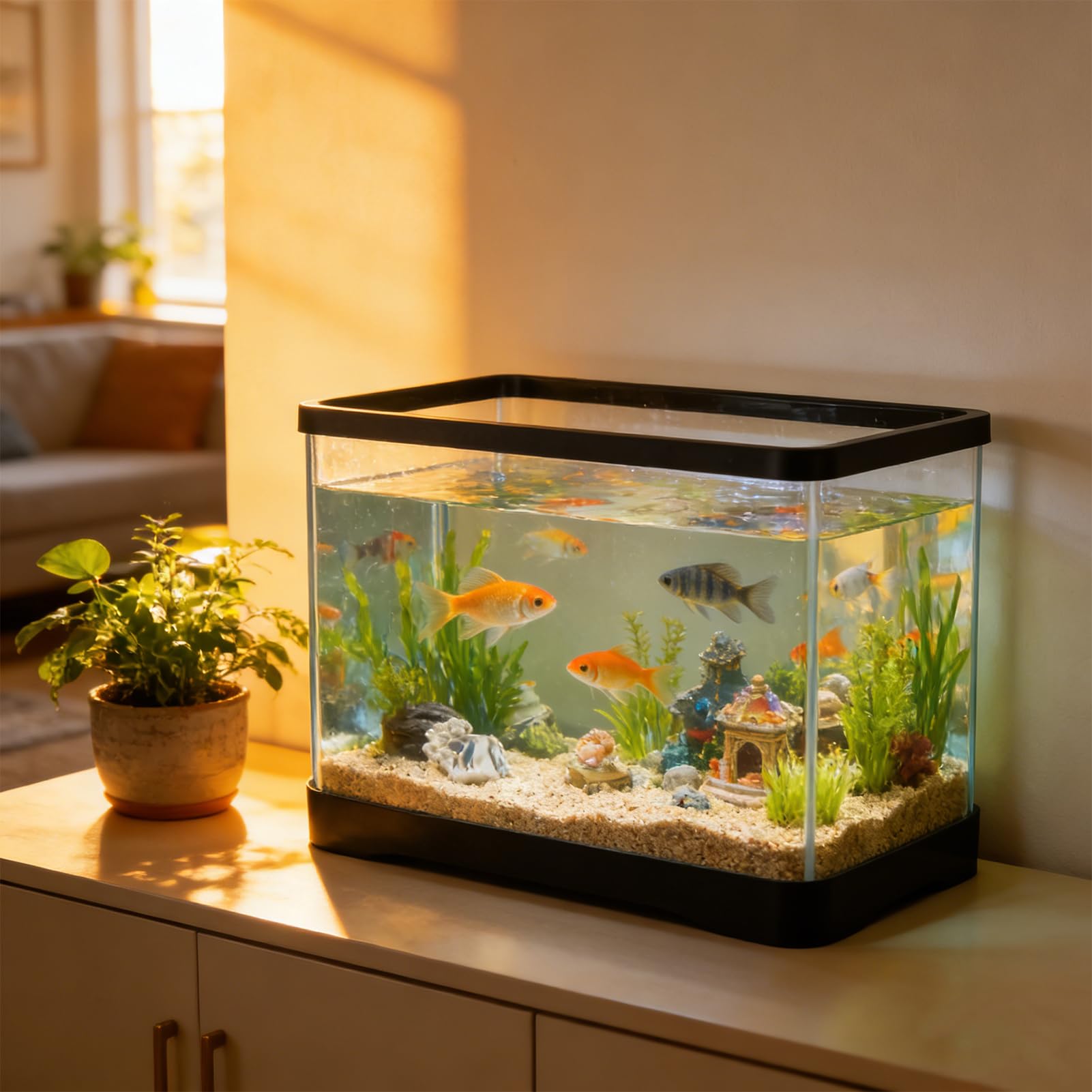 - Package Contents: This 2 gallon plastic rectangular fish tank is the ideal desktop aquarium. Its simple and versatile design blends perfectly with any decorating style; the transparent plastic material and rounded shape make it an ideal centerpiece, adding a touch of nature to your desktop