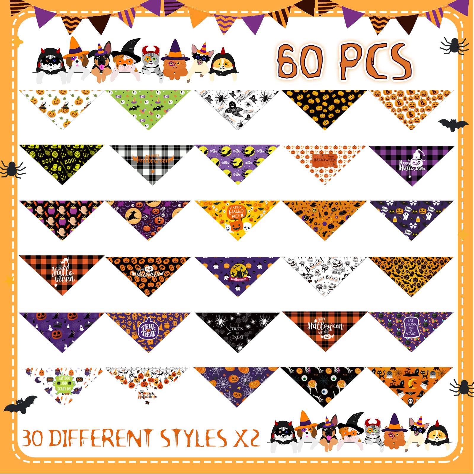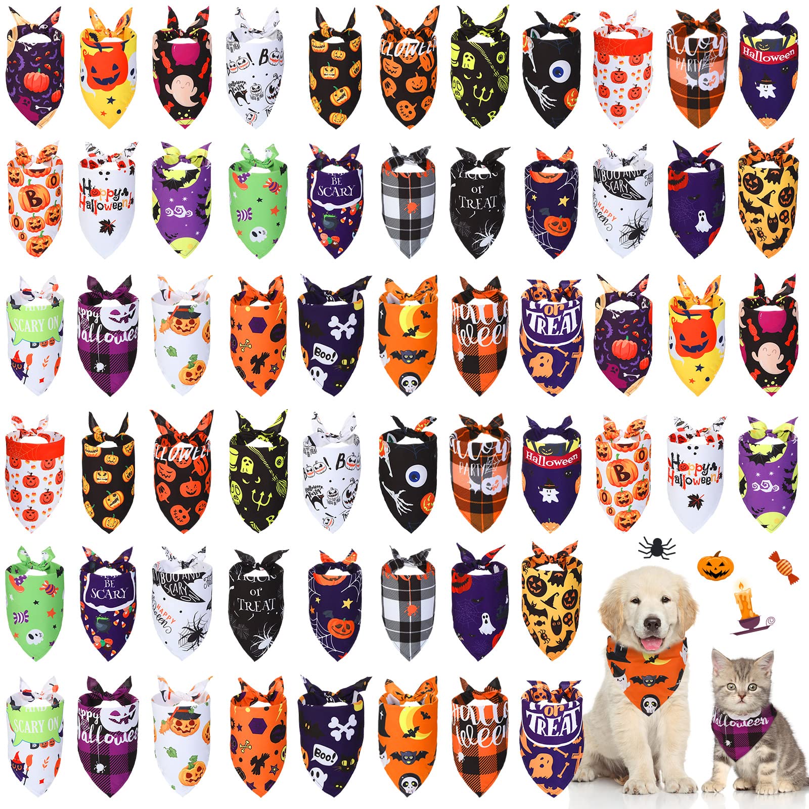 60 Pcs Halloween Dog Bandanas Bulk Holiday Dog Bandanas Adjustable Dog Bibs Triangle Dog Scarf Holiday Pet Costume for Small to Large Pet Dog