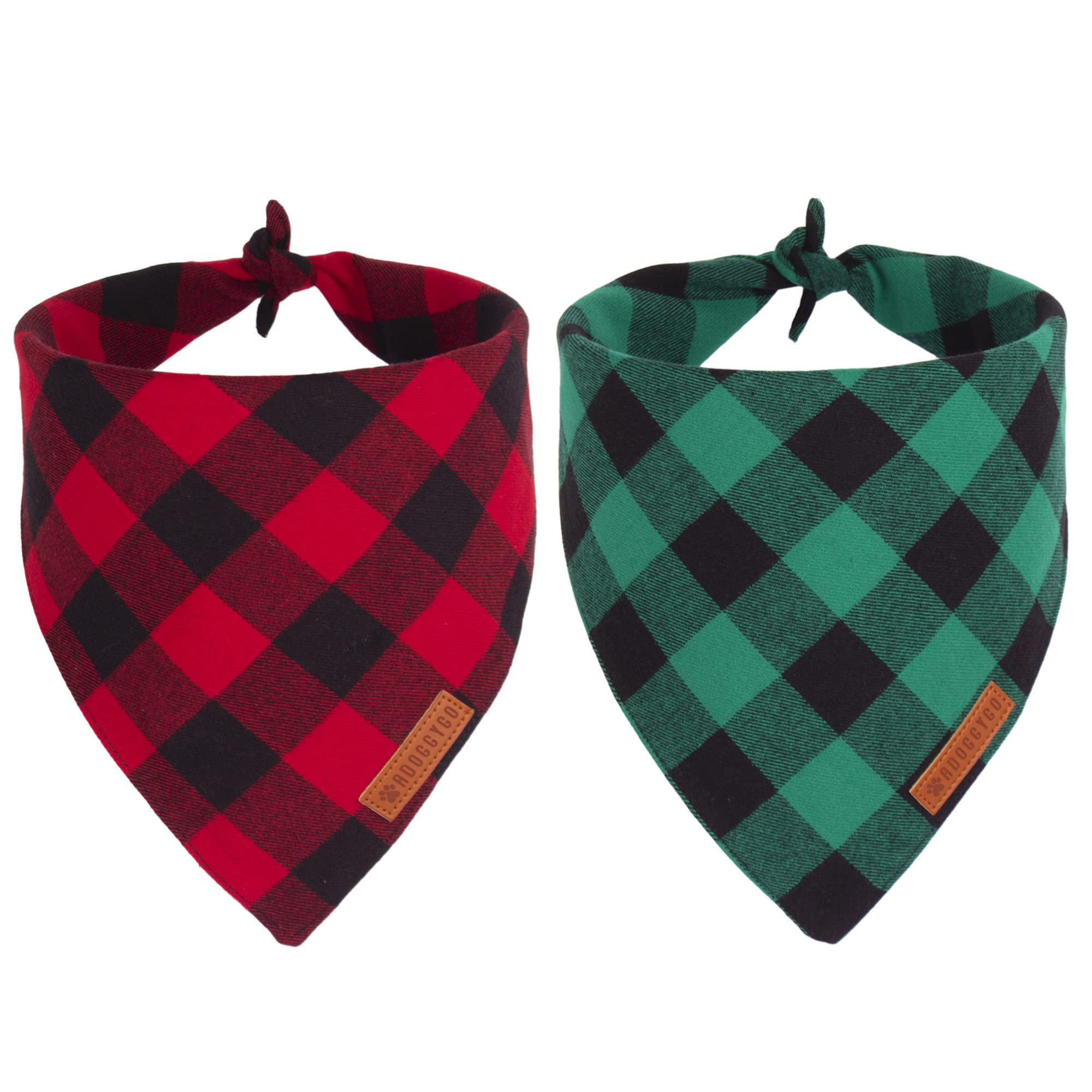 ADOGGYGO Christmas Dog Bandanas 2 Pack, Premium Cotton Fabric, Multiple Sizes Offered, Red Green Plaid Bandanas for Medium Large Dogs (Large, Xmas)