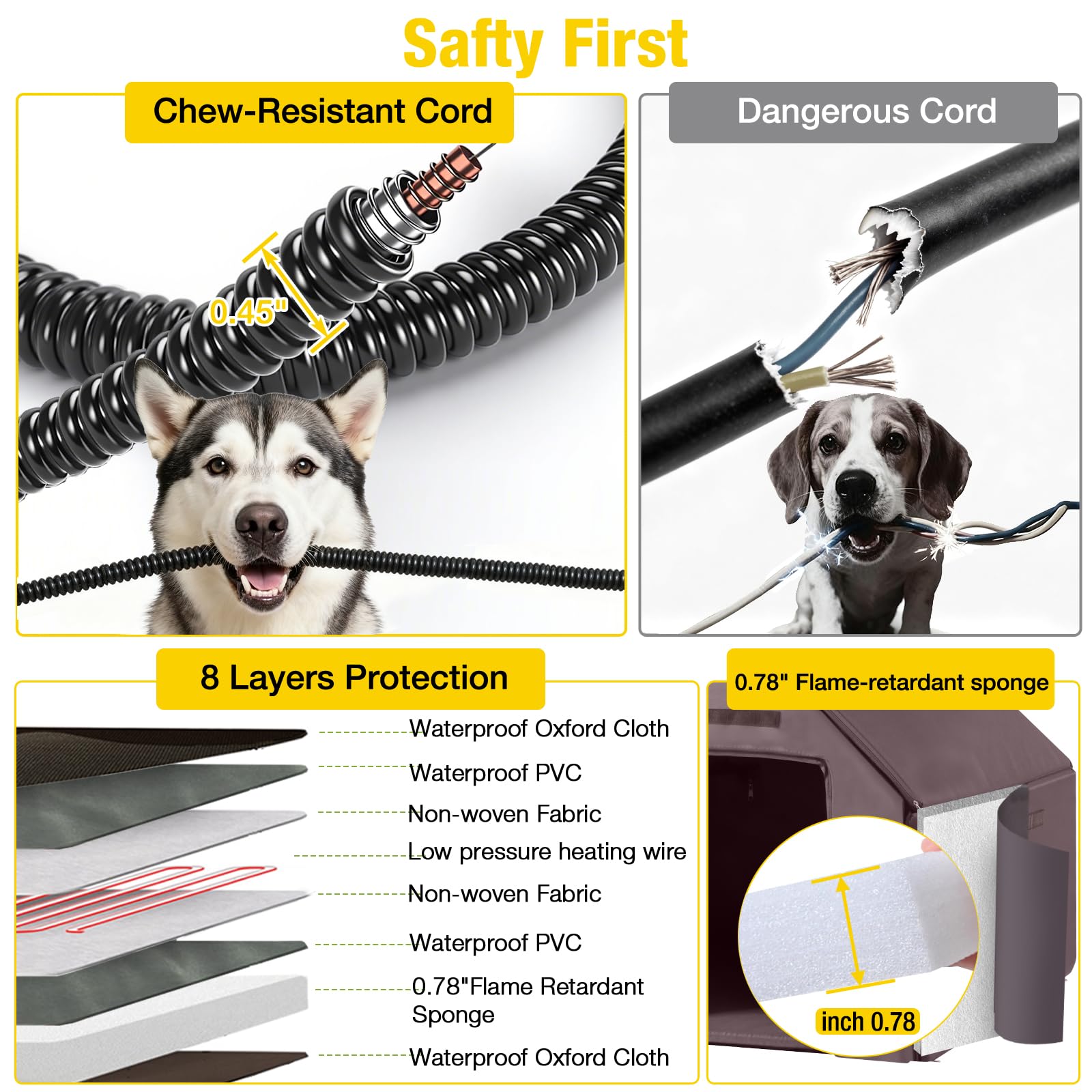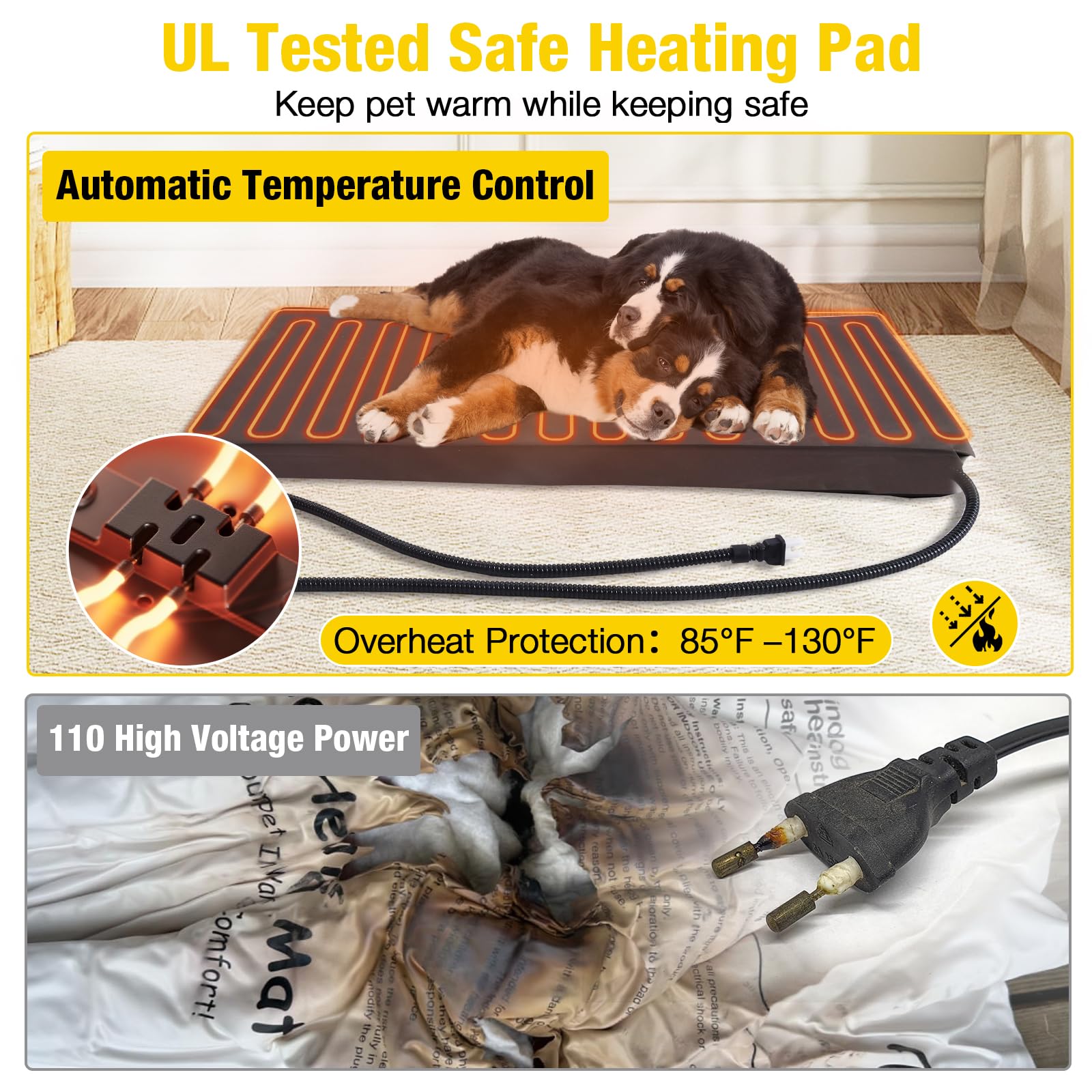 - Safe Heating System: UL-tested heating pad with automatic temperature control (89-116°F). Build in high-temperature protection device preventing overheating or chilling, ensures consistent warmth. 6.5 ft chew-resistant cord adds an extra layer of safety
