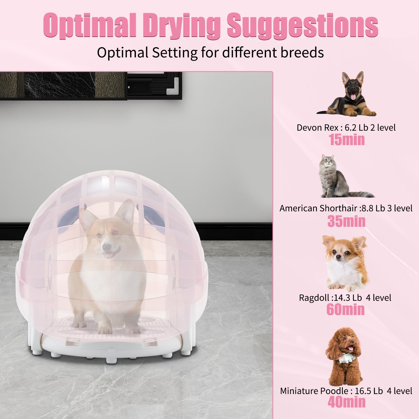 - 【Convenient Use】: You can set the drying time according to the size of your furry friend, and the foldable pet drying box will automatically stop after the timer ends, making it more convenient to use.