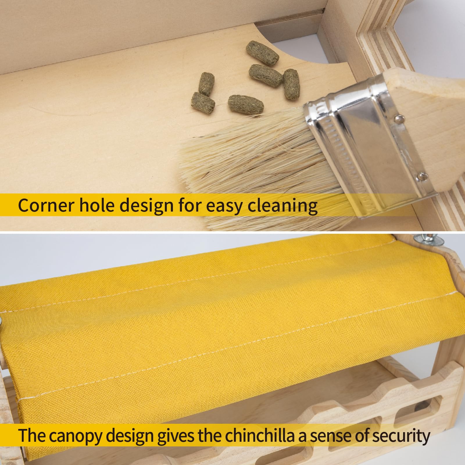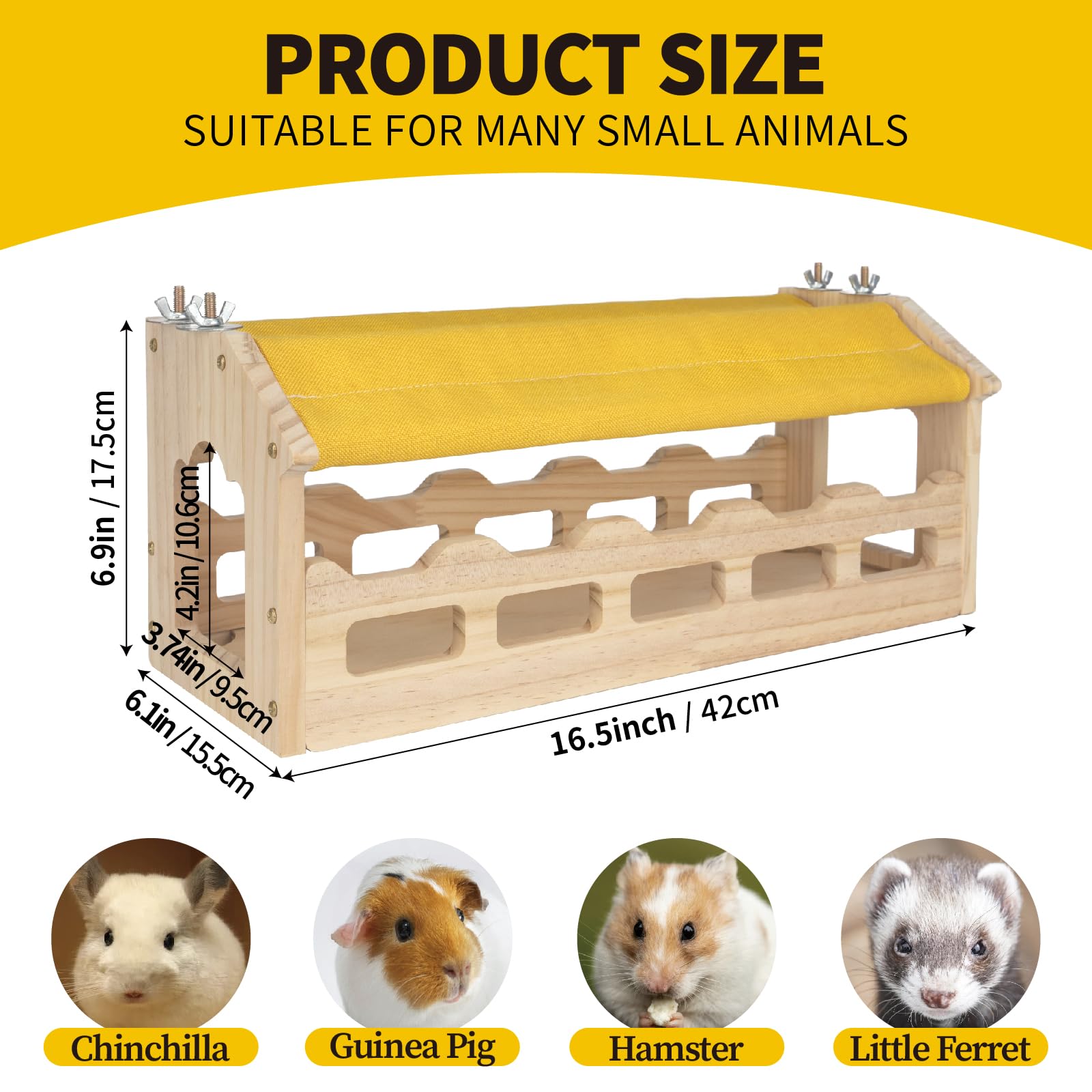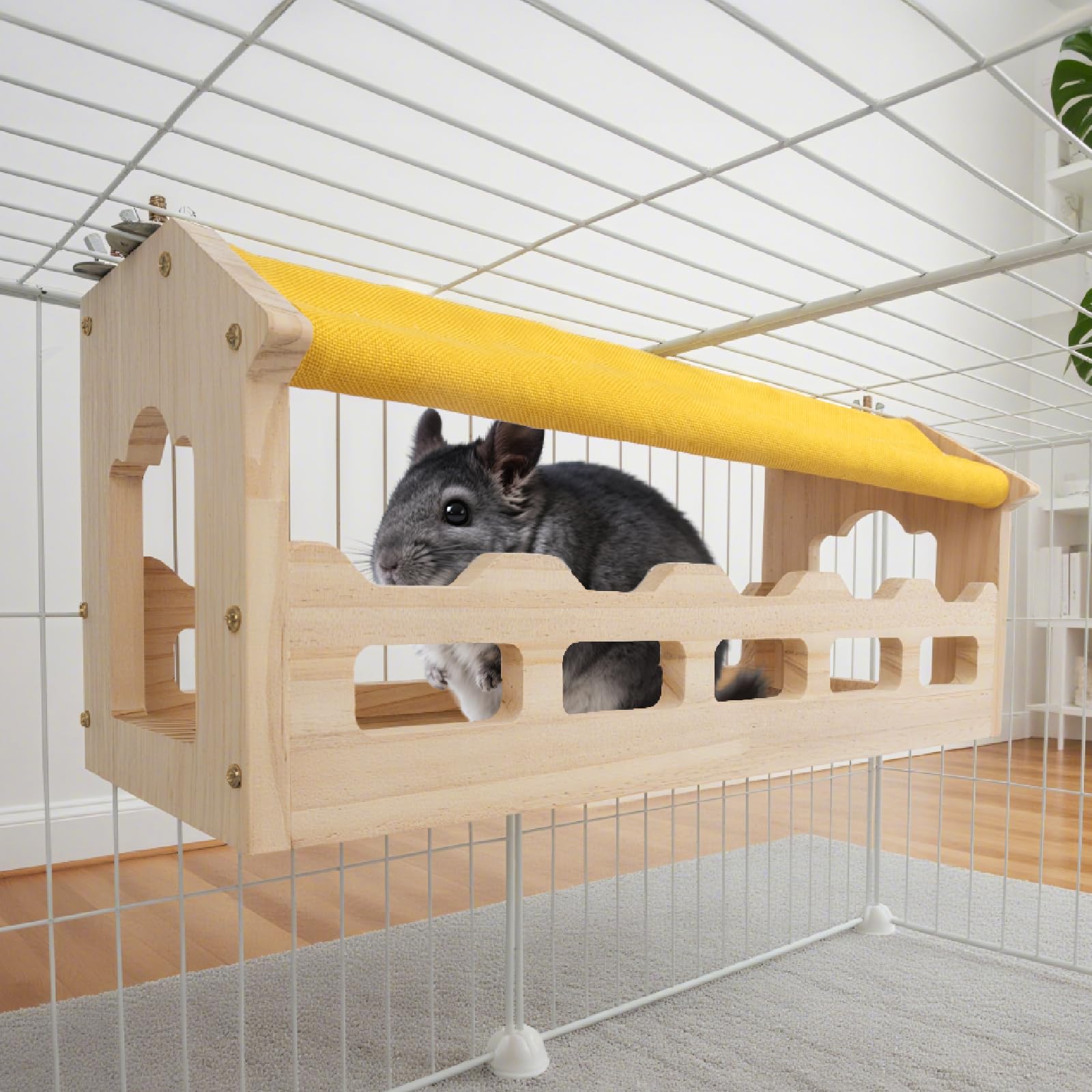 - 【STURDY AND DURABLE】This chinchilla drawbridge is made of high quality laminate and is a full 0.6 inches thick. The sturdy nature is perfect for use as a chew toys for small animals.