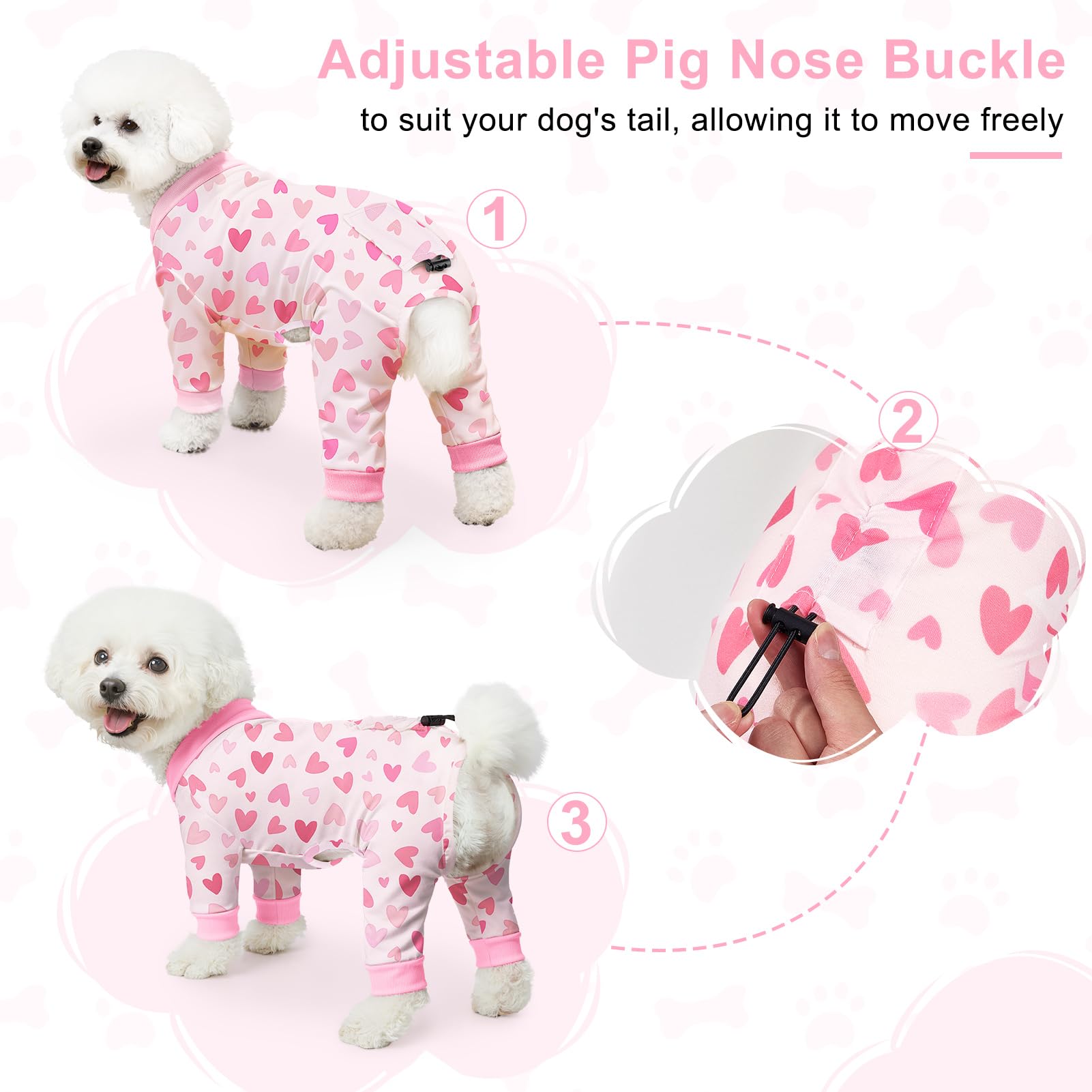 - Adjustable Back Length:The back of our dog pjs is equipped with a drawstring design, which can adjust the size according to the length of the dog's back to make it fit well;It is also very convenient to adjust, which solves your worries about the fear that the dog will not be able to wear it