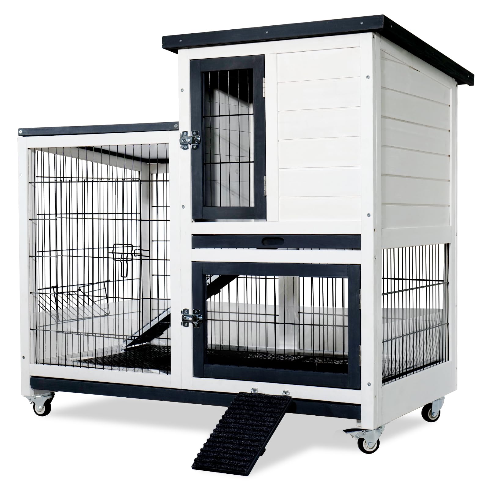 Bunny Hutch Indoor Rabbit Cage Outdoor 2-Story Rabbit House with Urine Guards and 2 Removable Tray for Small Animals