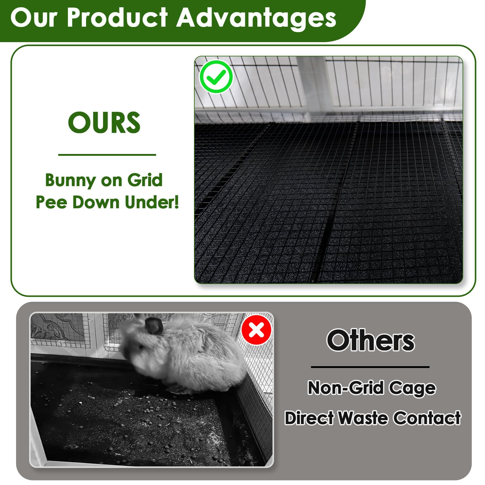 - Ultra-Safe Indoor Rabbit Hutch:Narrow-spaced wire mesh gently supports soft paws, eliminating painful foot trapping—even during excited thumping. No scary "click" sounds, just peace of mind for pet owners(upper tier doesn’t include wire mesh)