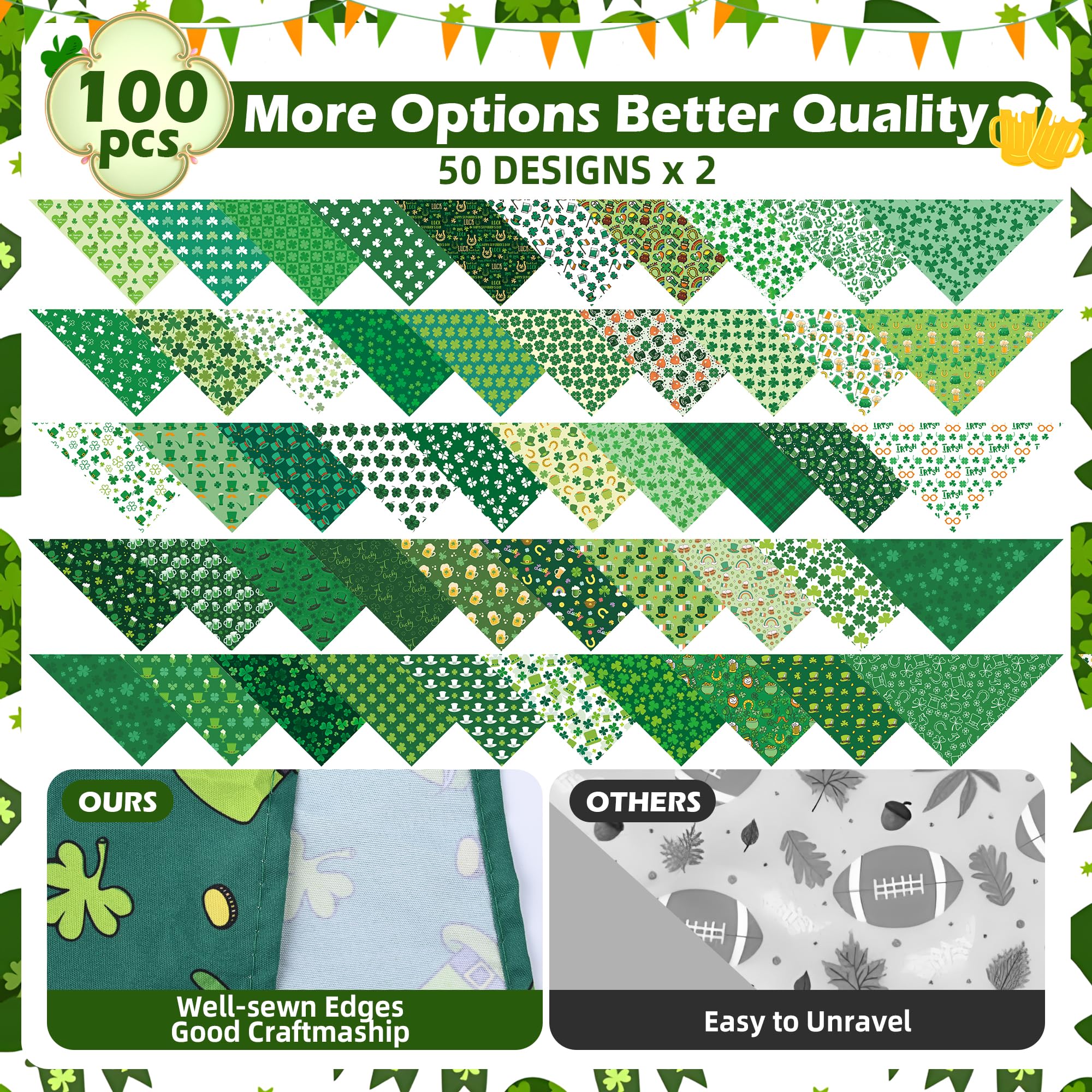 - 100-Piece Set with 50 Styles: A value pack of 200 bandanas for dogs in 50 St. Patrick-themed designs, offering a great variety for dog owners, groomers, and pet lovers.