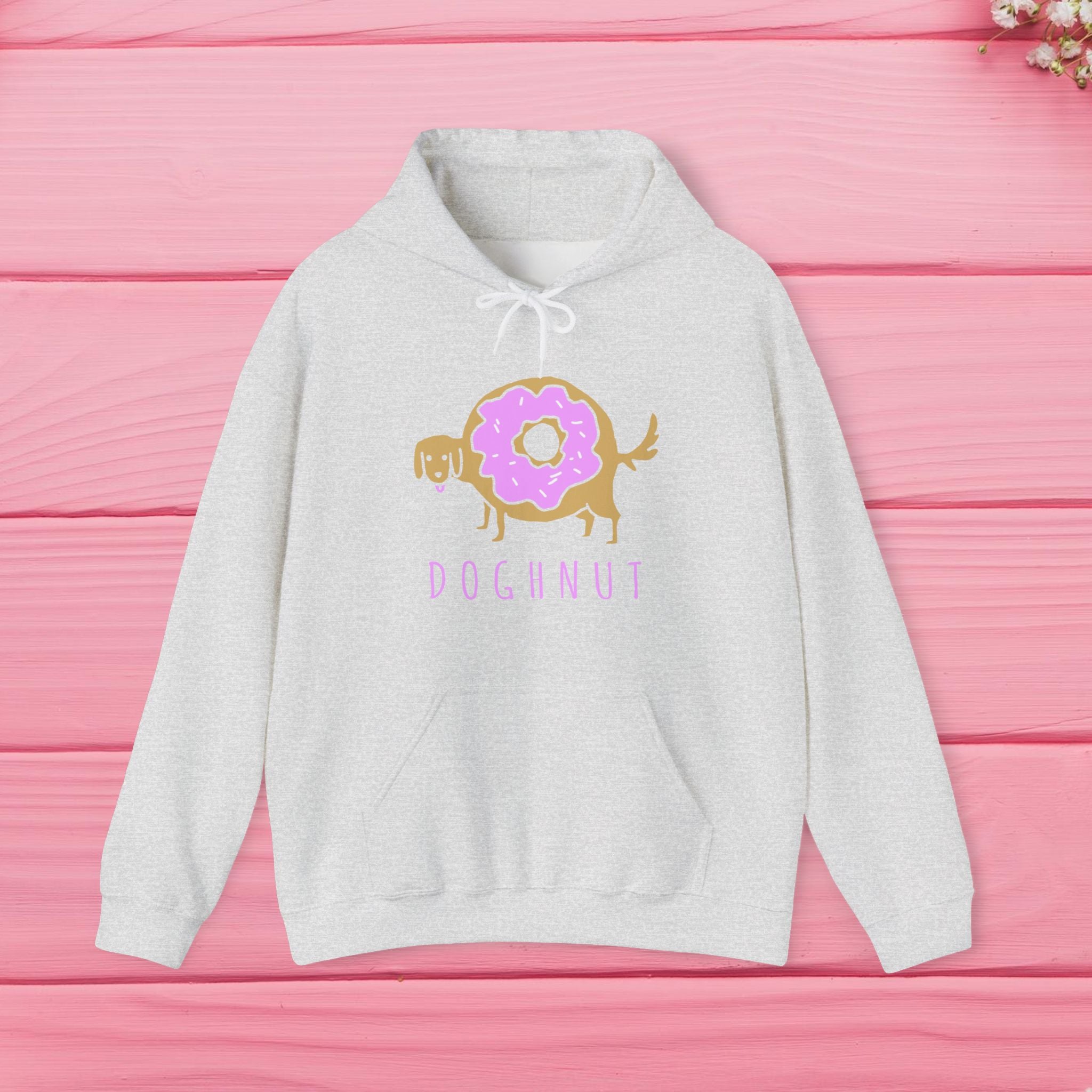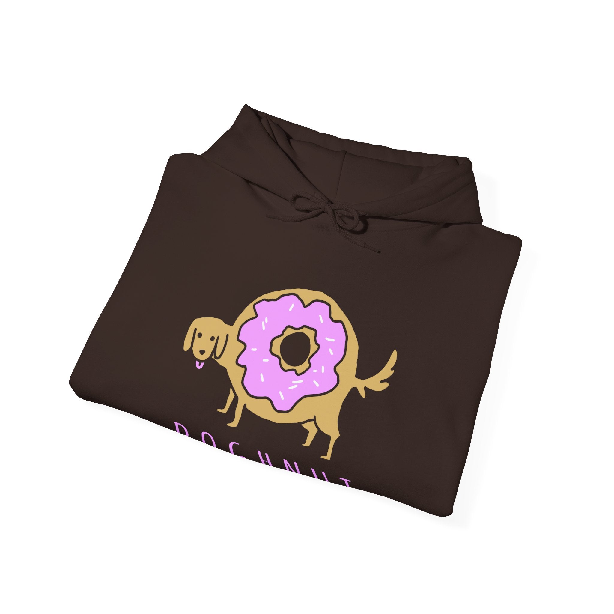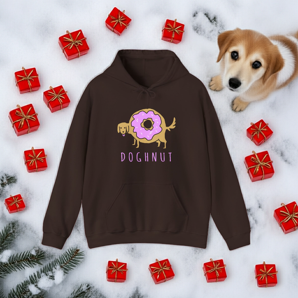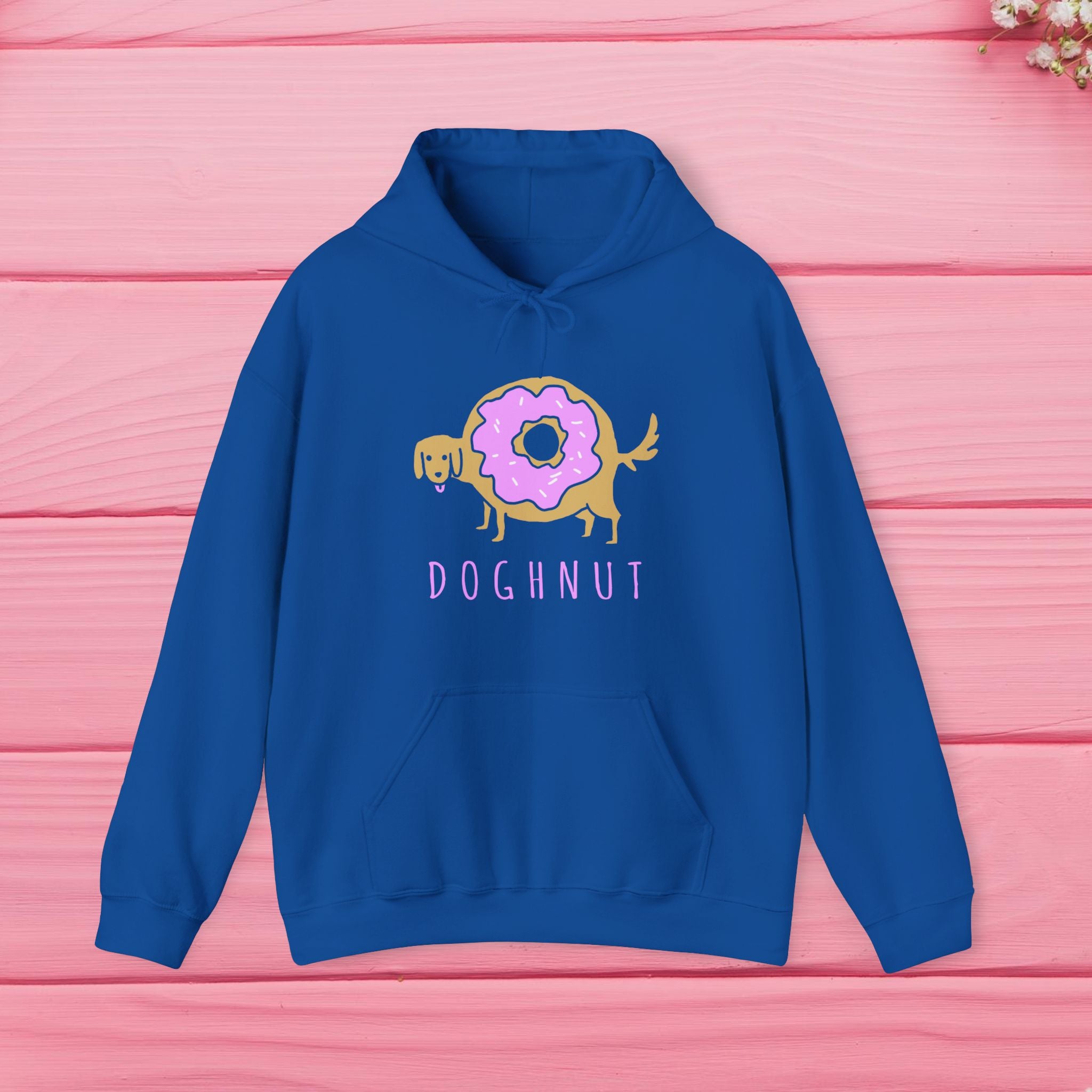 A dognut lover hooded sweatshirt that provides cozy warmth and a soft feel, perfect for chilly days. The spacious pockets and adjustable hood make it practical and stylish for anyone looking to stay warm and comfortable. This hoodie is relevant for dog lovers and those who enjoy cute and quirky designs. Perfect for casual wear or as a cozy layer during colder seasons.