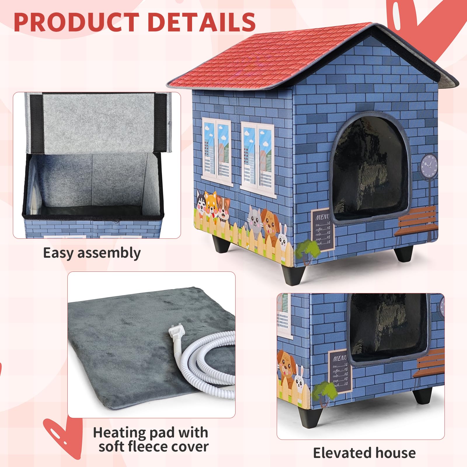 - 【Easy to Assemble and Clean】The heated cat house is very easy to assemble in minutes.Features a removable and washable heating pad cover, ensuring your cat's home is always clean and comfortable.Note: The heating pad itself is not washable and can be wiped clean with a damp cloth.