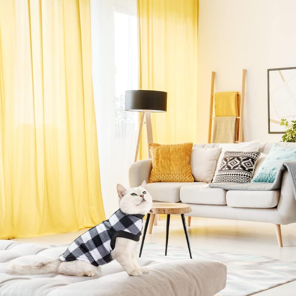 EXPAWLORER Plaid Cat Sweater - Pet Clothes Cat Puppy Vest Warm Fleece Hoodie for Cats, Fall and Cold Winter Coat Pullover Design, Buffalo Checked Sweatshirt Clothing Also for Small Dogs