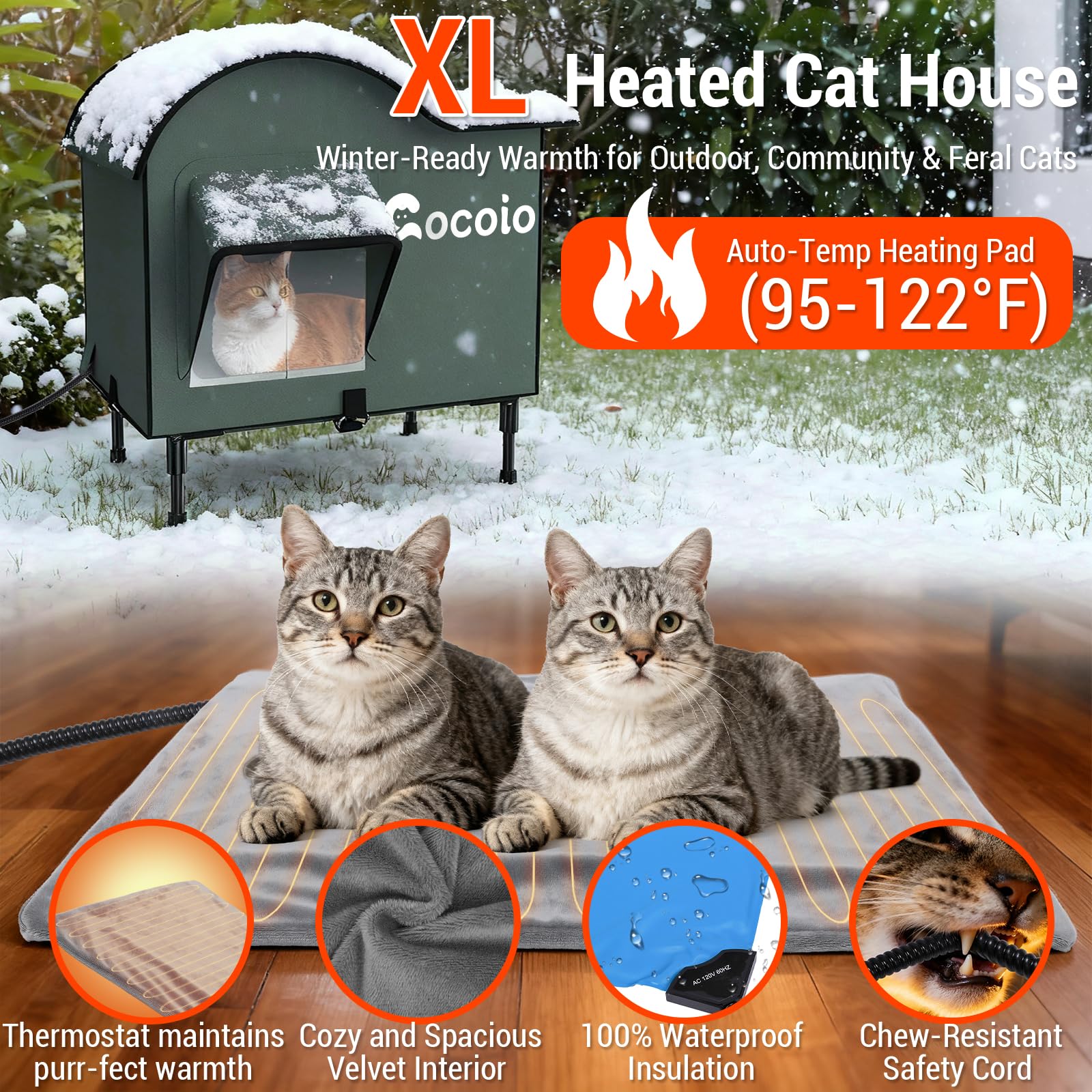 - 【Heartwarming Gift for Cat Heroes】The ultimate "I care" present for cat lovers! Ideal for feral cat colonies, TNR rescuers, or balcony loungers. Comes gift-ready with: Detachable house (23.6"x15.5"x27.2") Thermostat heating pad Chew-proof cable + 2 door stoppers Plush inner mat "My barn cats finally stopped shivering!" – Actual customer