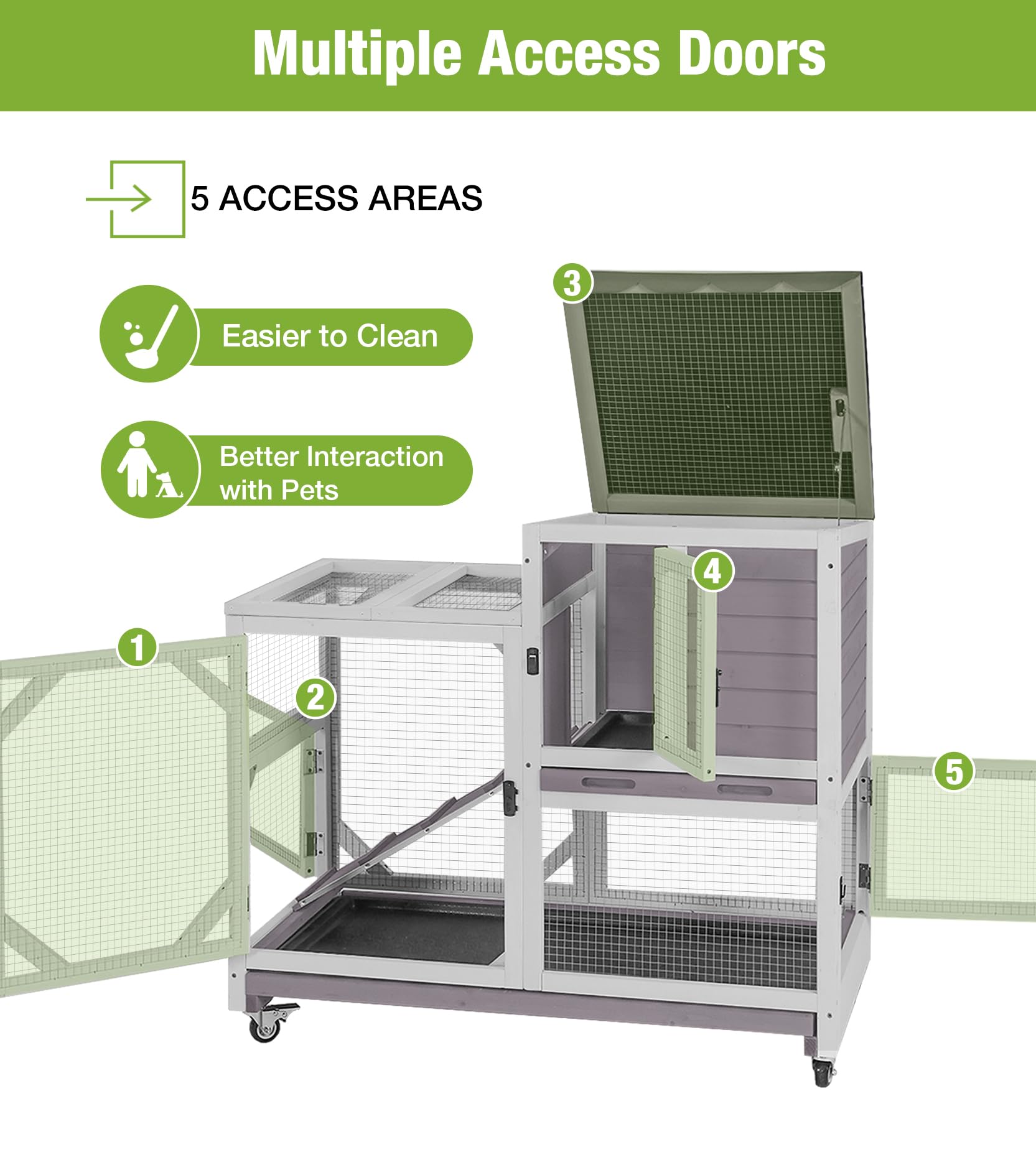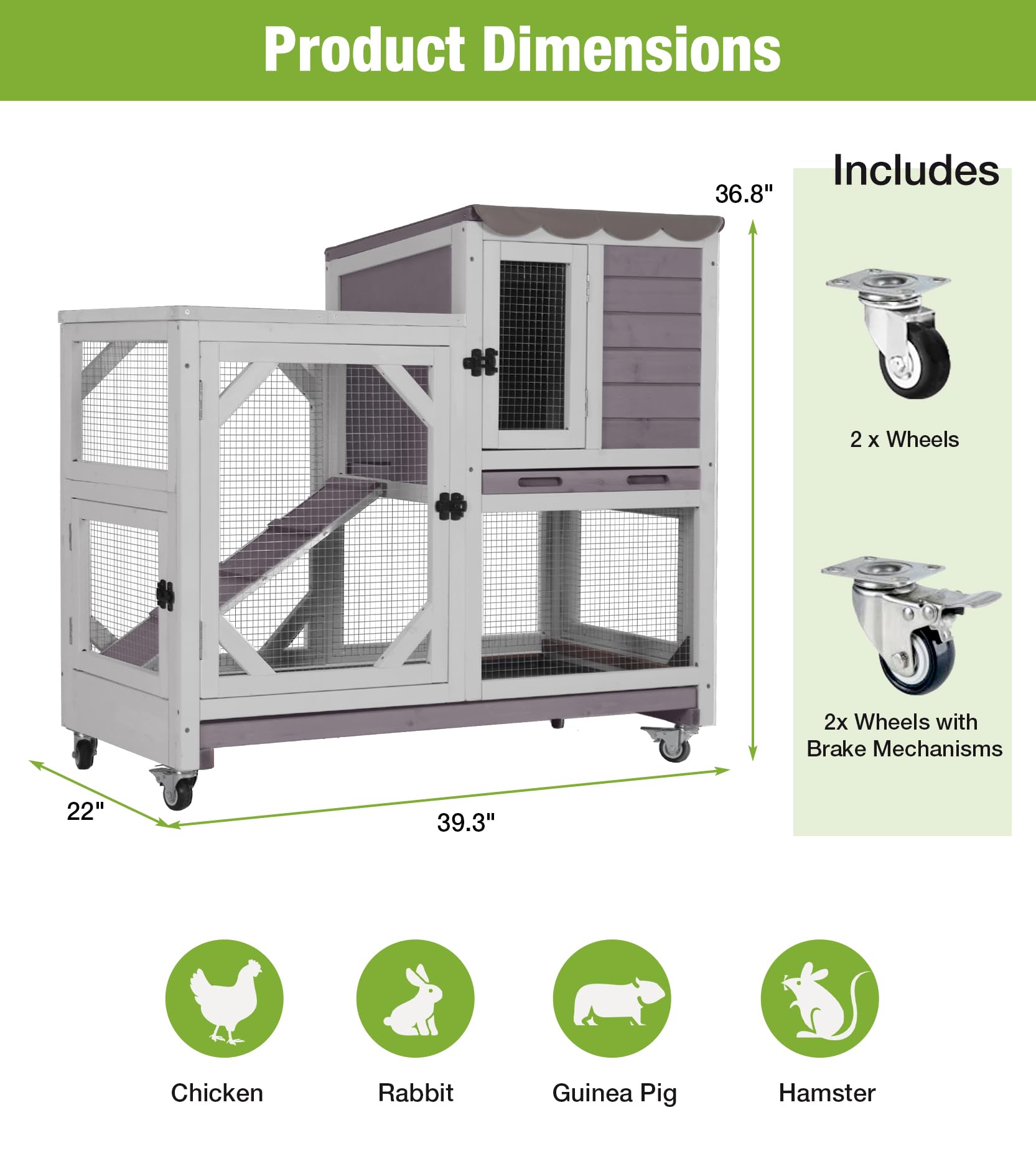 - ππππ-ππππ πππππππ ππππ ππππππ - Featuring 4 swivel casters (2 with brakes), this indoor rabbit hutch allows smooth mobility. Lock brakes to secure it, suiting both indoor and outdoor use