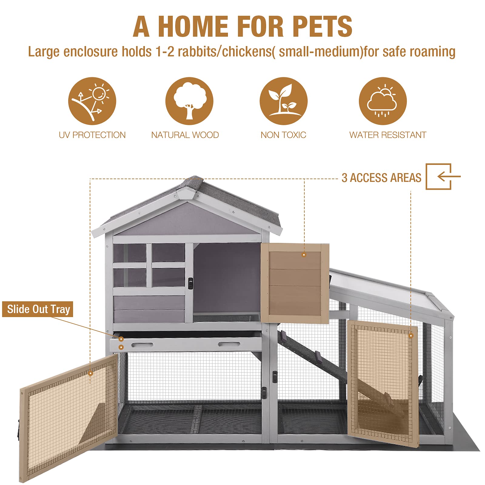 - THE TRAY WILL NOT LEAK URINE: Rabbit hutch with pull out tray is convenient to collect waste. Quality plastic trays will never leak or rusty