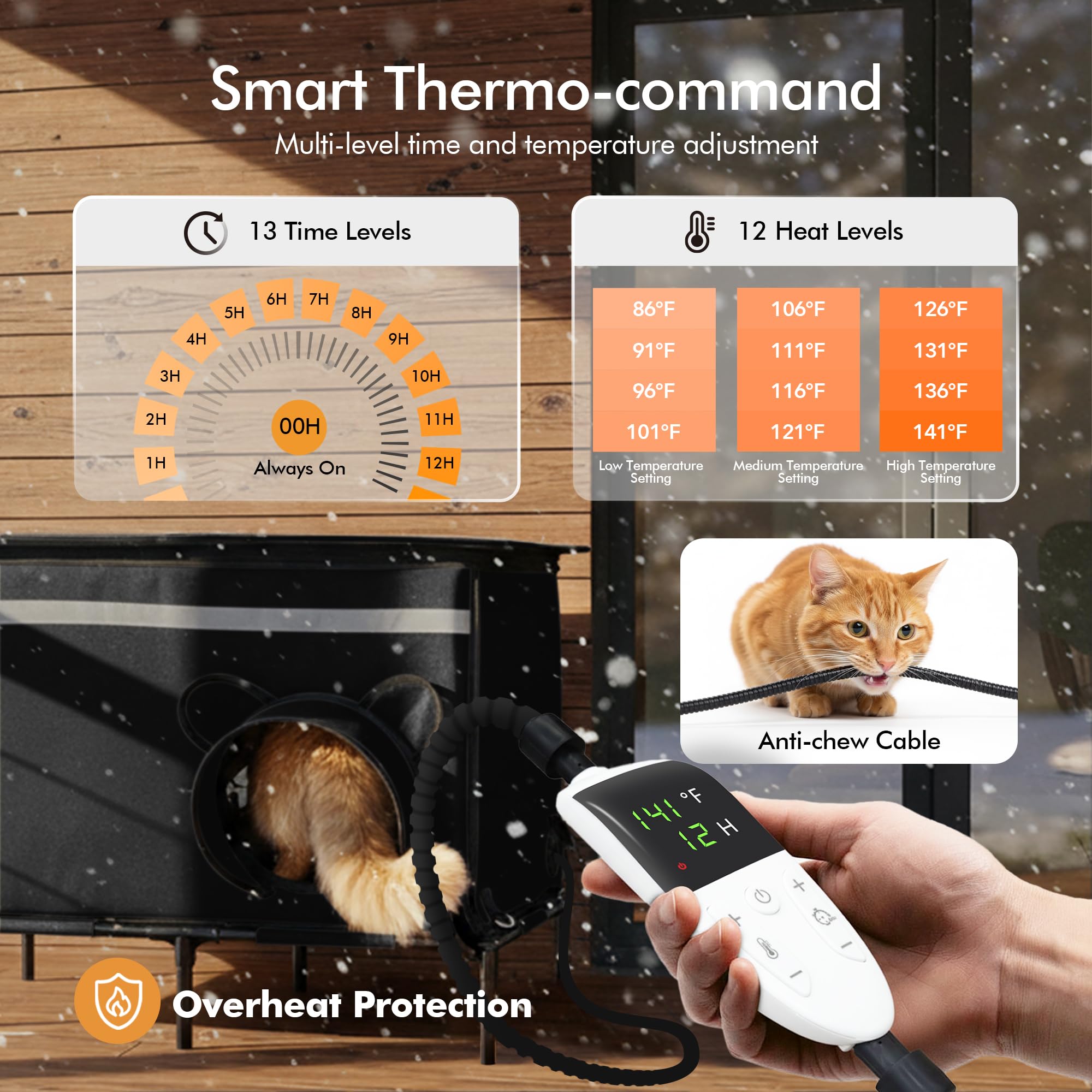 - 【Easy-Clean Oxford Fabric & Removable Heating Pad】 Keep freshness simple! The durable Oxford fabric exterior resists dirt and can be rinsed clean in minutes—no complicated washing needed. The soft heating pad is easily removable and hand-wash safe. Perfect for maintaining purr-fect hygiene all year long. On warm days, remove the pad to turn their house into a breezy, cool retreat.