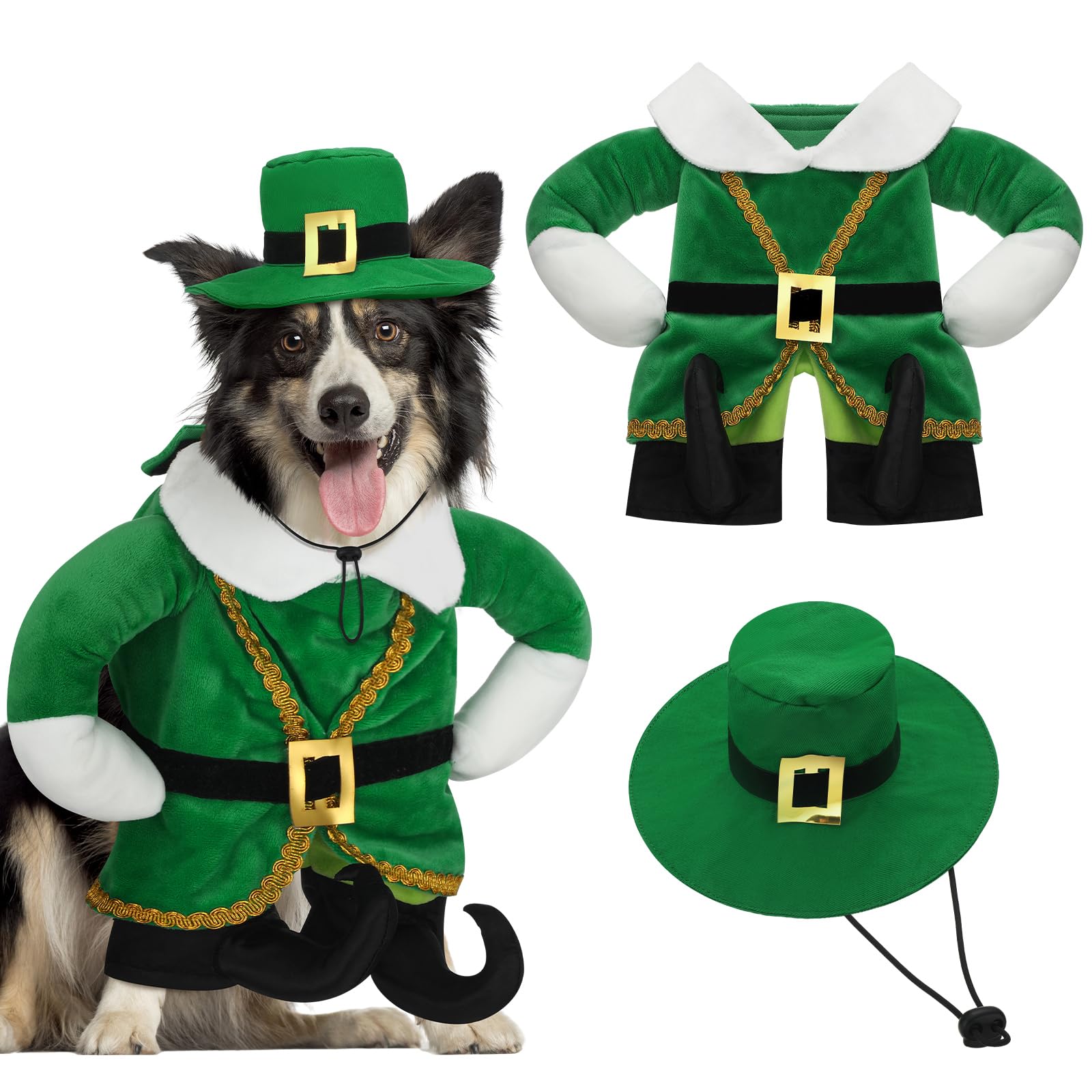 Hollowfly St. Patrick's Day Dog Costume Walking Leprechaun Dog Outfit with Arms Irish Day Holiday Pet Clothes Cosplay Accessories for Cat Doggy Pet(M)