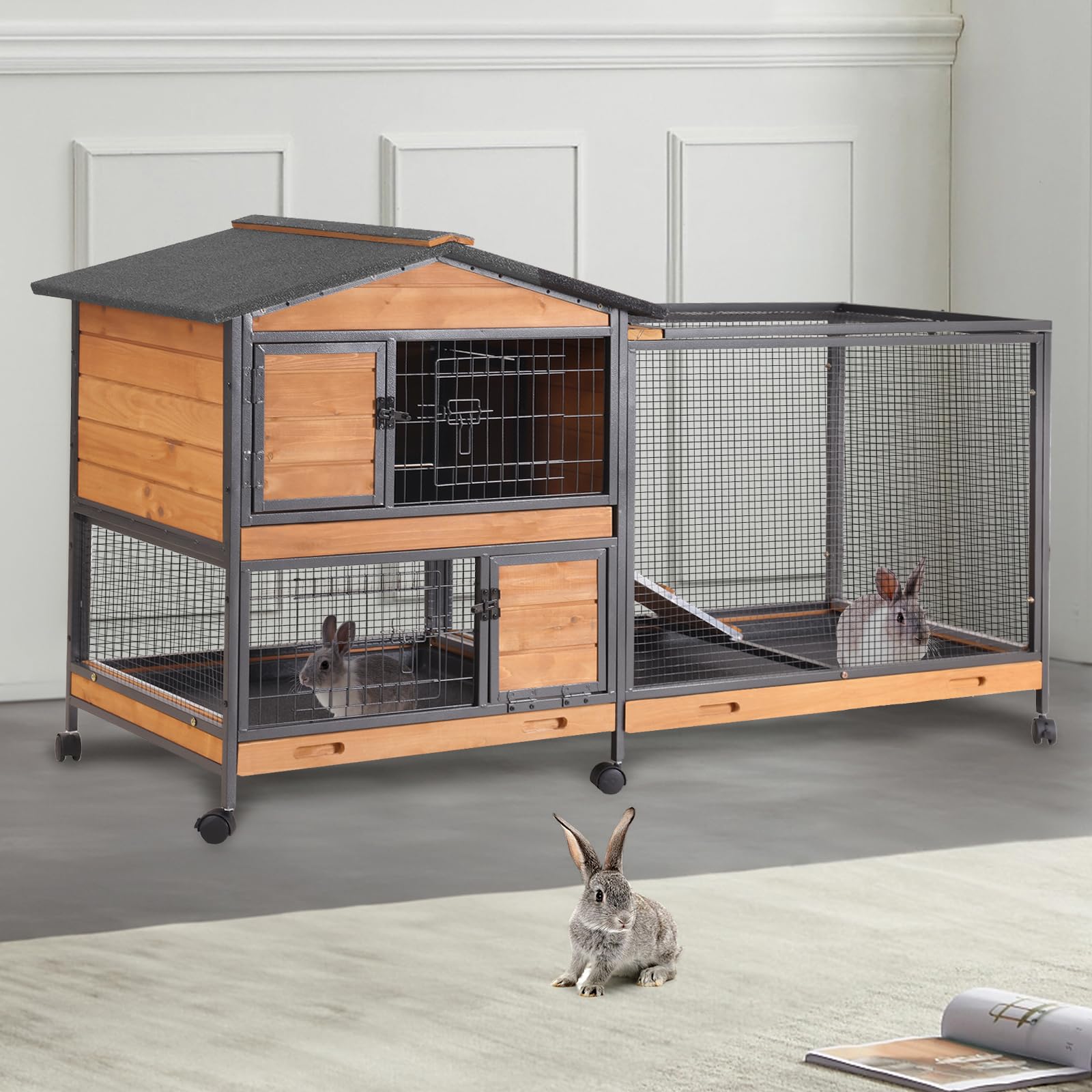 - 【Versatile Habitat】 Accommodates rabbits, guinea pigs, and small animals with seamless transition between cozy indoor settings and supervised outdoor time