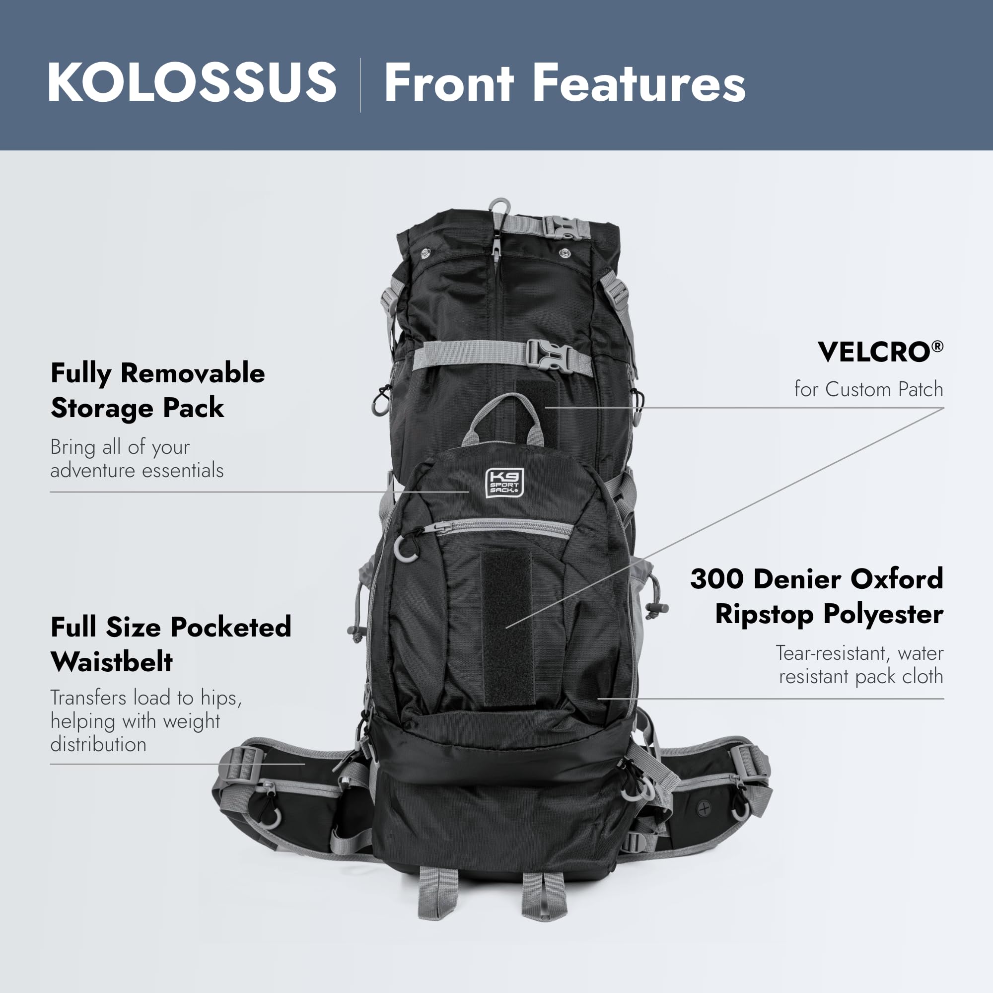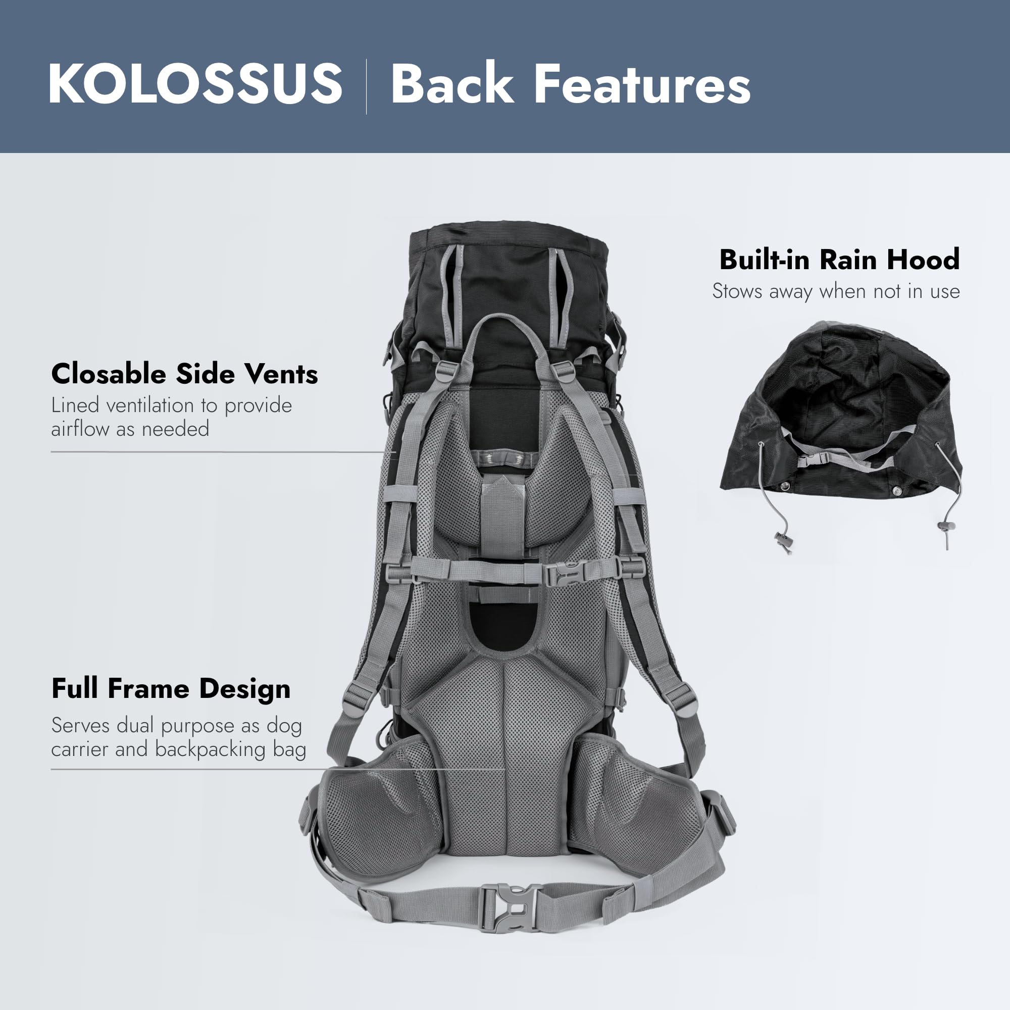 - DOG CARRIER + HIKING PACK - When you’re not carrying your four-legged friend, Kolossus doubles as a professional-grade hiking pack with 60L of storage. Whether you're heading into the wild or taking on city streets, you’ll be ready for adventure!