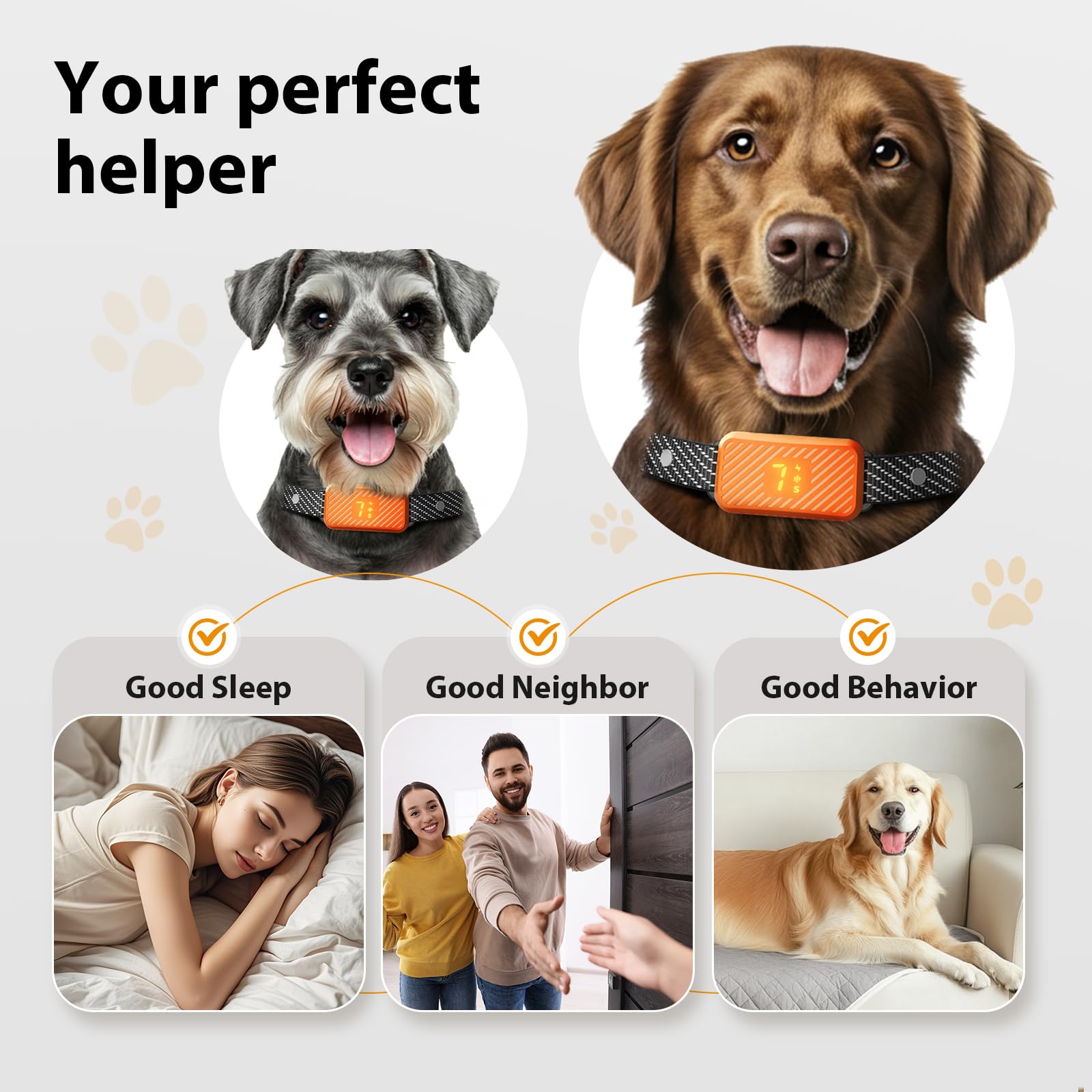 - 【Perfect Fit for Most Dogs】 From tiny 8-pound companions to energetic 130-pound buddies, this adjustable bark collar fits them all comfortably! The adjustable 8-24 inch strap and ultra-lightweight 0.12-lb design make it a perfect bark collar for large dog, a perfect bark collar for medium dogs, and also a perfect bark collar for small dogs 5-15lbs! Perfect for multi-dog households where different sizes share space! (Recommended for dogs 6+ months old.)