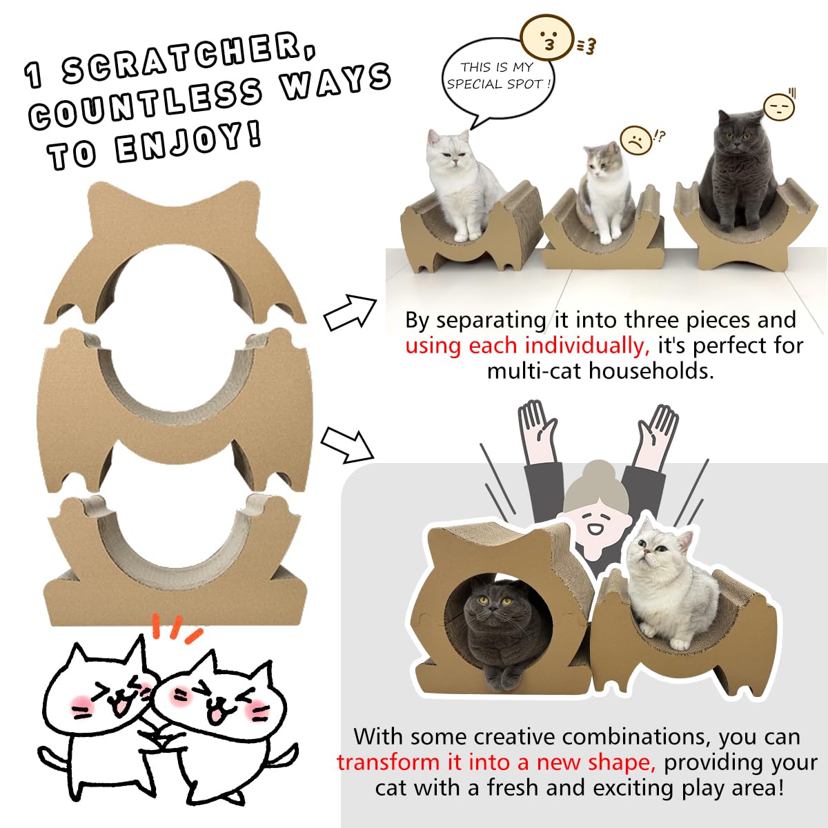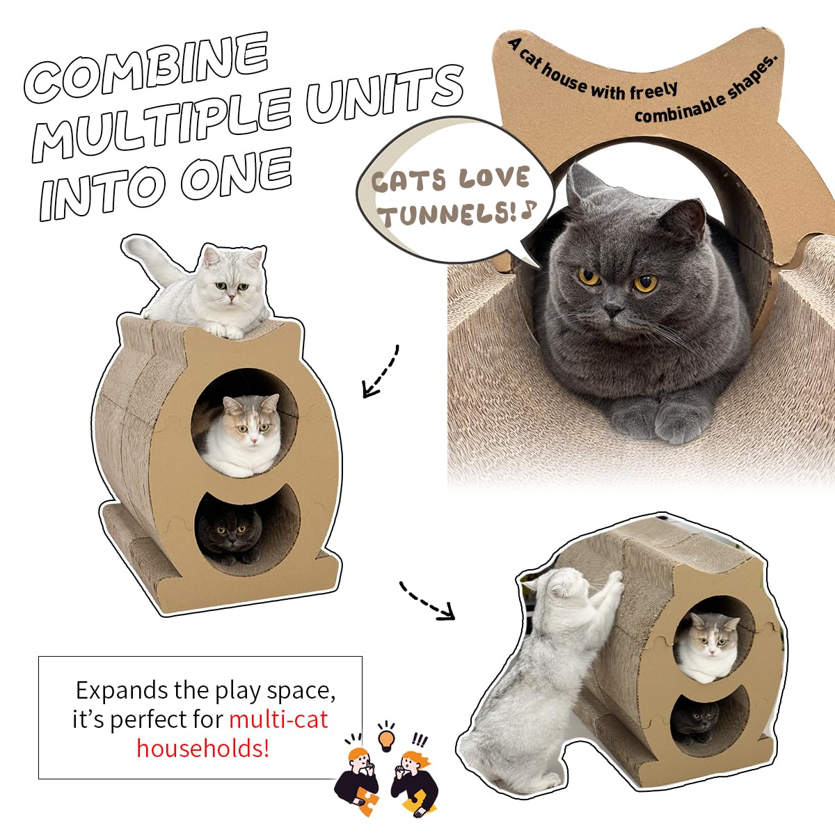 - [Customizable Combination] The cat scratcher is designed like a puzzle, allowing easy assembly and disassembly of individual units. Multiple units can be combined to create a cat scratcher tunnel, providing a spacious play area and relaxing zone. You can also combine them to create a cat scratcher lounge that suits your cat's personality and preferences.