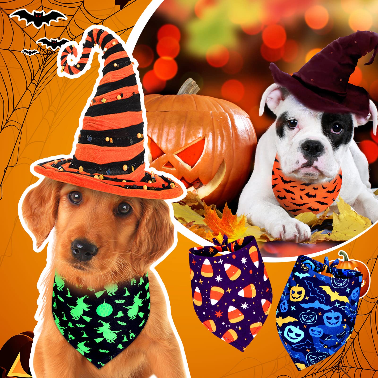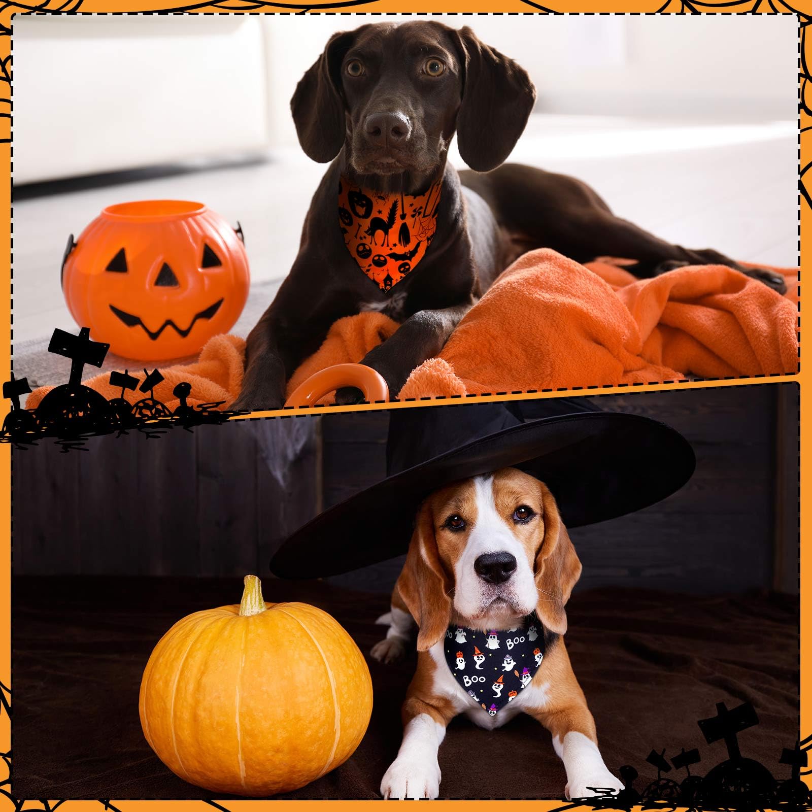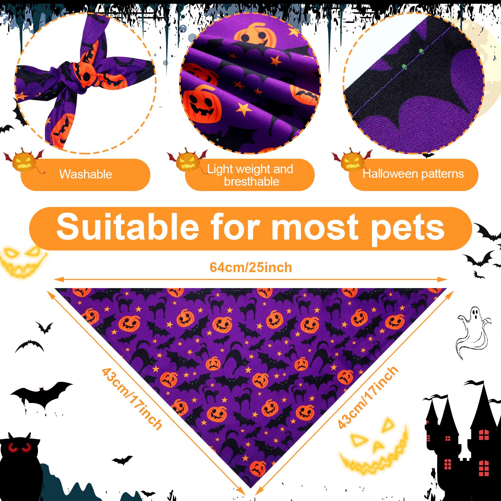 - Halloween Designs: these Halloween bandanas for dogs are printed with classic Halloween designs such as ghosts, bats, spider webs, skeletons and pumpkins, adding a spooky touch to your furry friend's outfit; Your pup will be the talk of the town at Halloween parties and trick or treating events