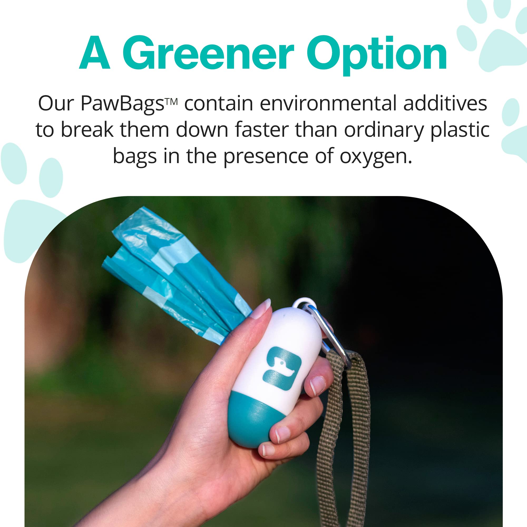 - Use With XL PawBags - Every purchase of this dog bag holder includes one roll of extra-large dogs bags for poop. Our planet-friendly, heavy duty poop bags are leakproof and block bad smells. They oxidize and disintegrate faster than ordinary plastic bags.