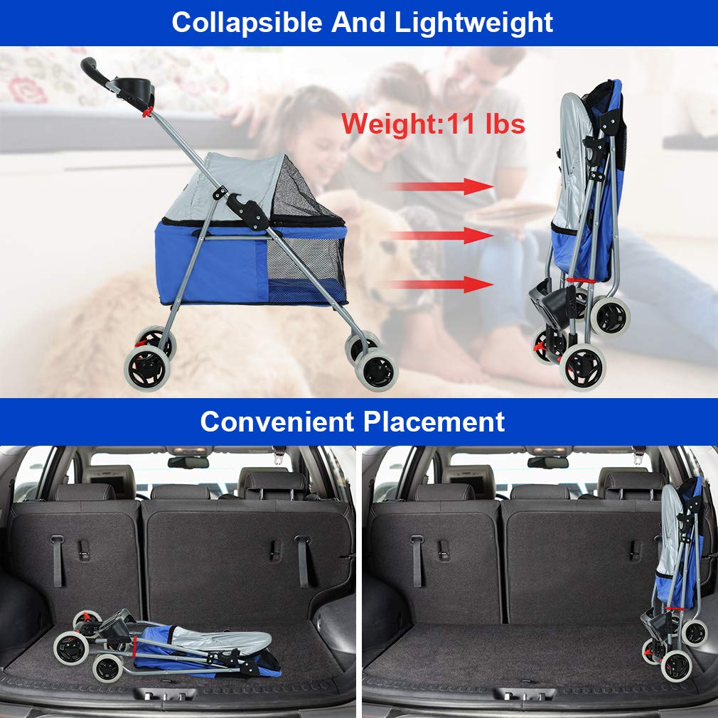 Pet Stroller 4 Wheels Posh Folding Waterproof Portable Travel Cat Dog Stroller with Cup Holder,Blue