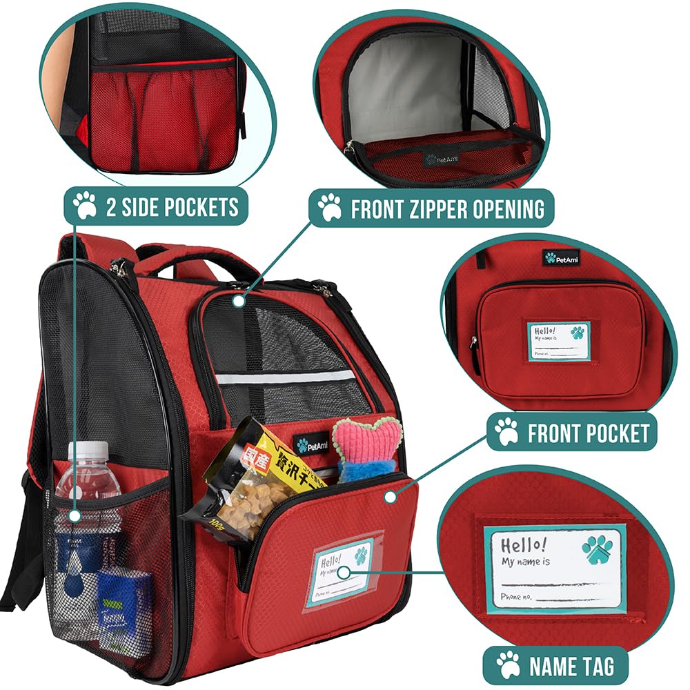 PetAmi Dog Backpack Carrier for Small Large Cat, Pet, Puppy, Ventilated Pet Hiking Backpack Travel Bag, Airline Approved Cat Backpack Carrier, Camping Biking Dog Bag Up to 18lbs Pet, Red