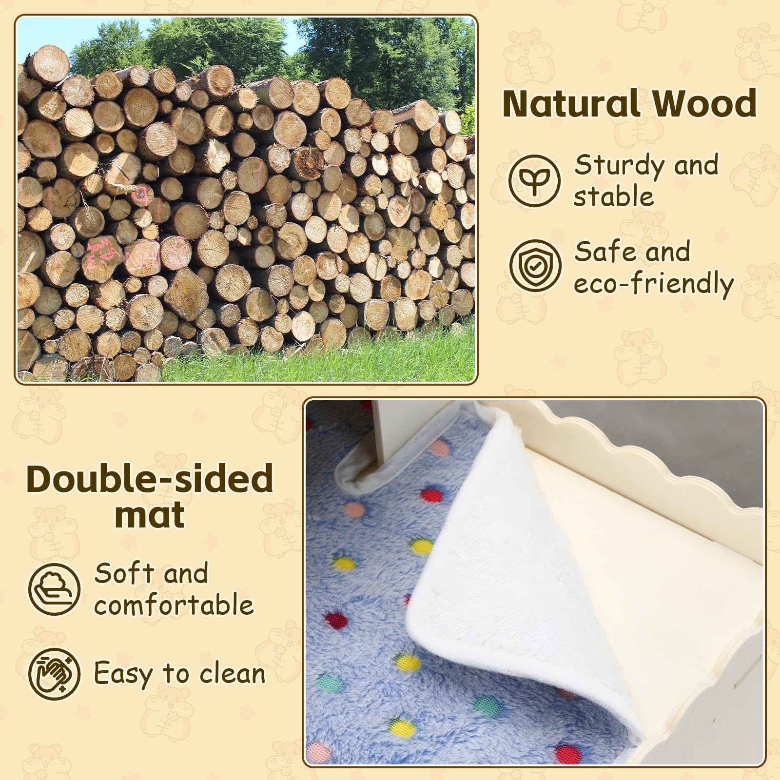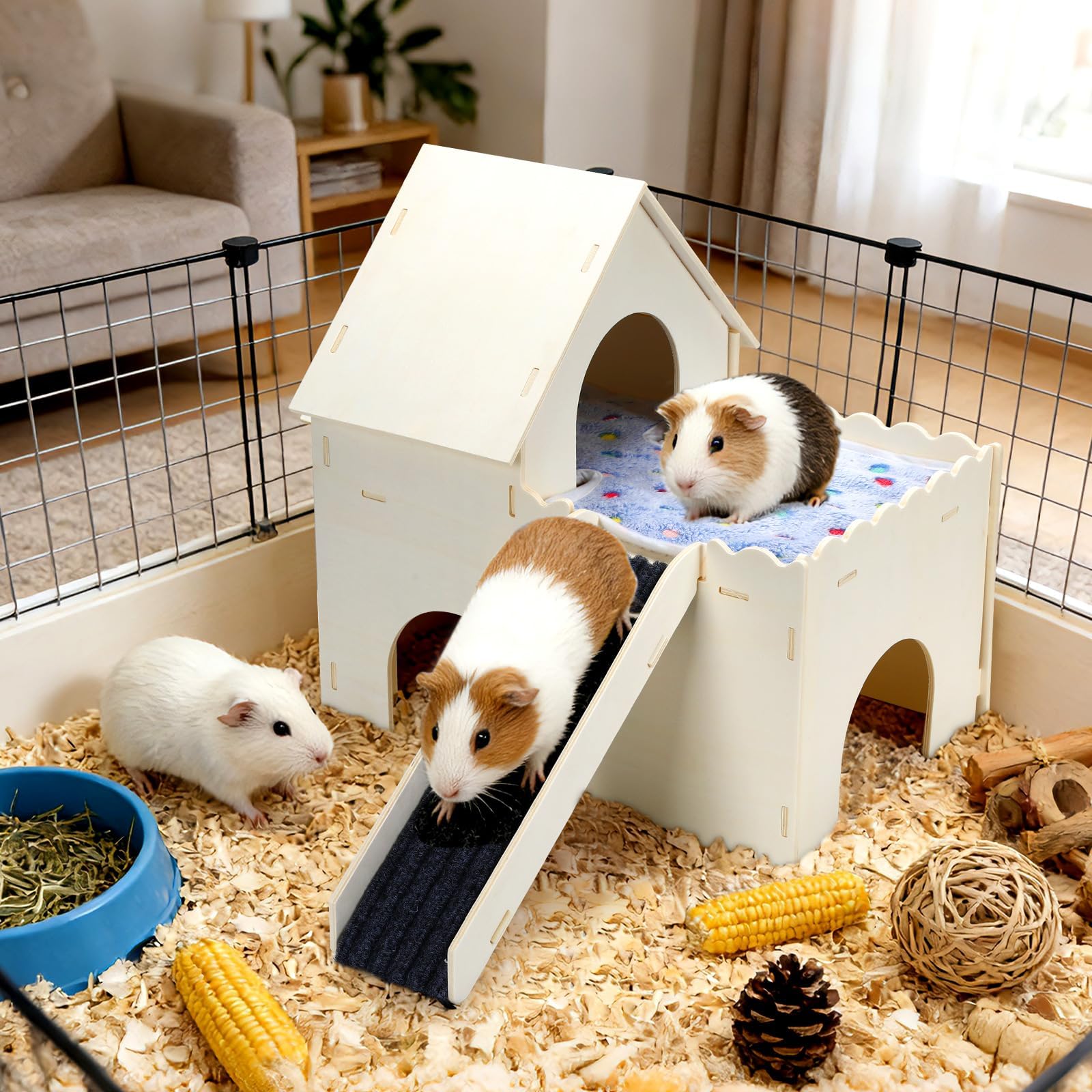- Natural Wood: Guinea pig hideout is mainly made of natural wood, which is secure and provides a haven for your pet. Guinea pig hut also bring more comfortable feeling to your pet