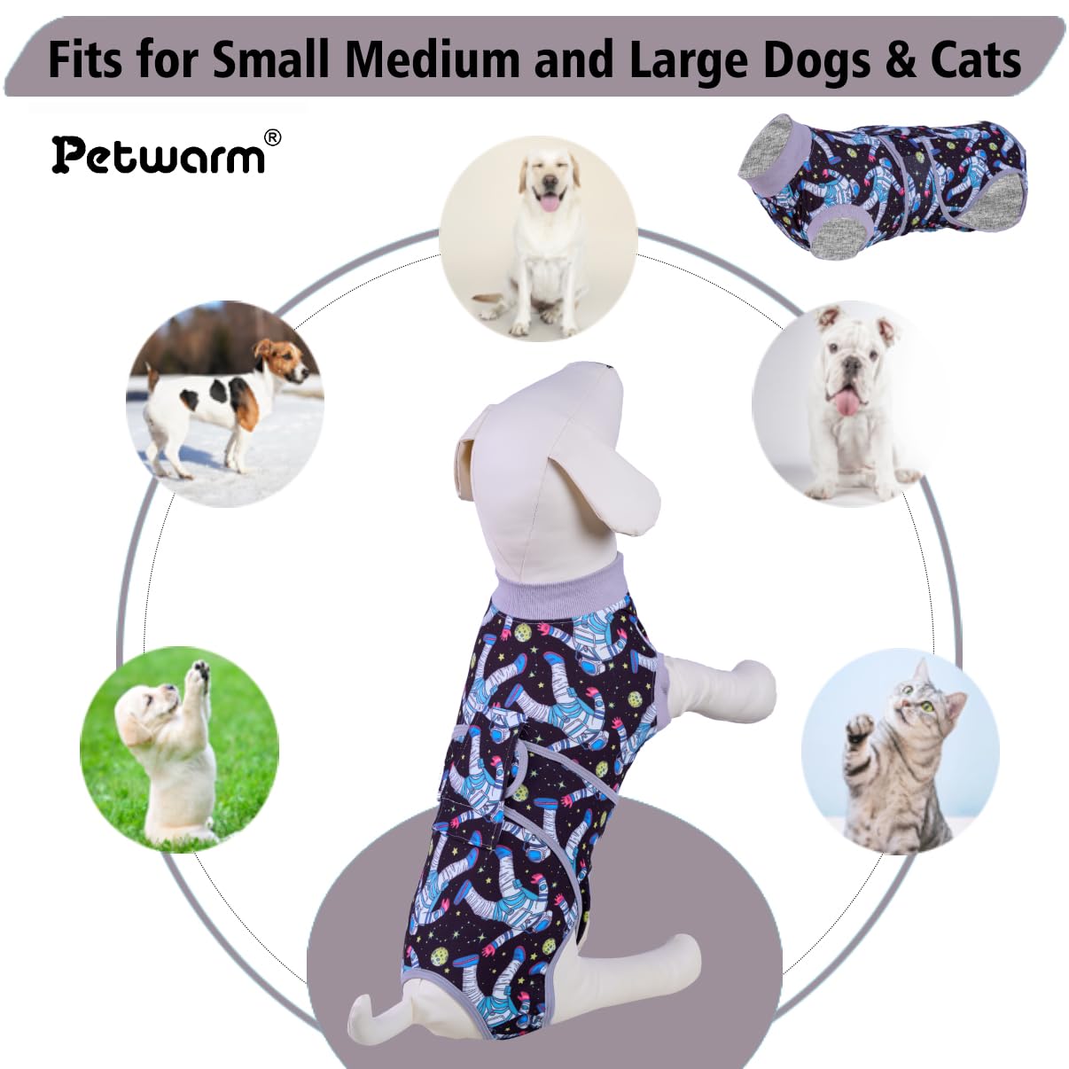 PetWarm Dog Surgical Recovery Suit, Recovery Suit for Female Male Dogs, Prevent Licking Dog Onesies, Pajamas for Dogs Spay Neuter, Hooded Pet Inner Clothes, Cosmic Pattern, Grey, S