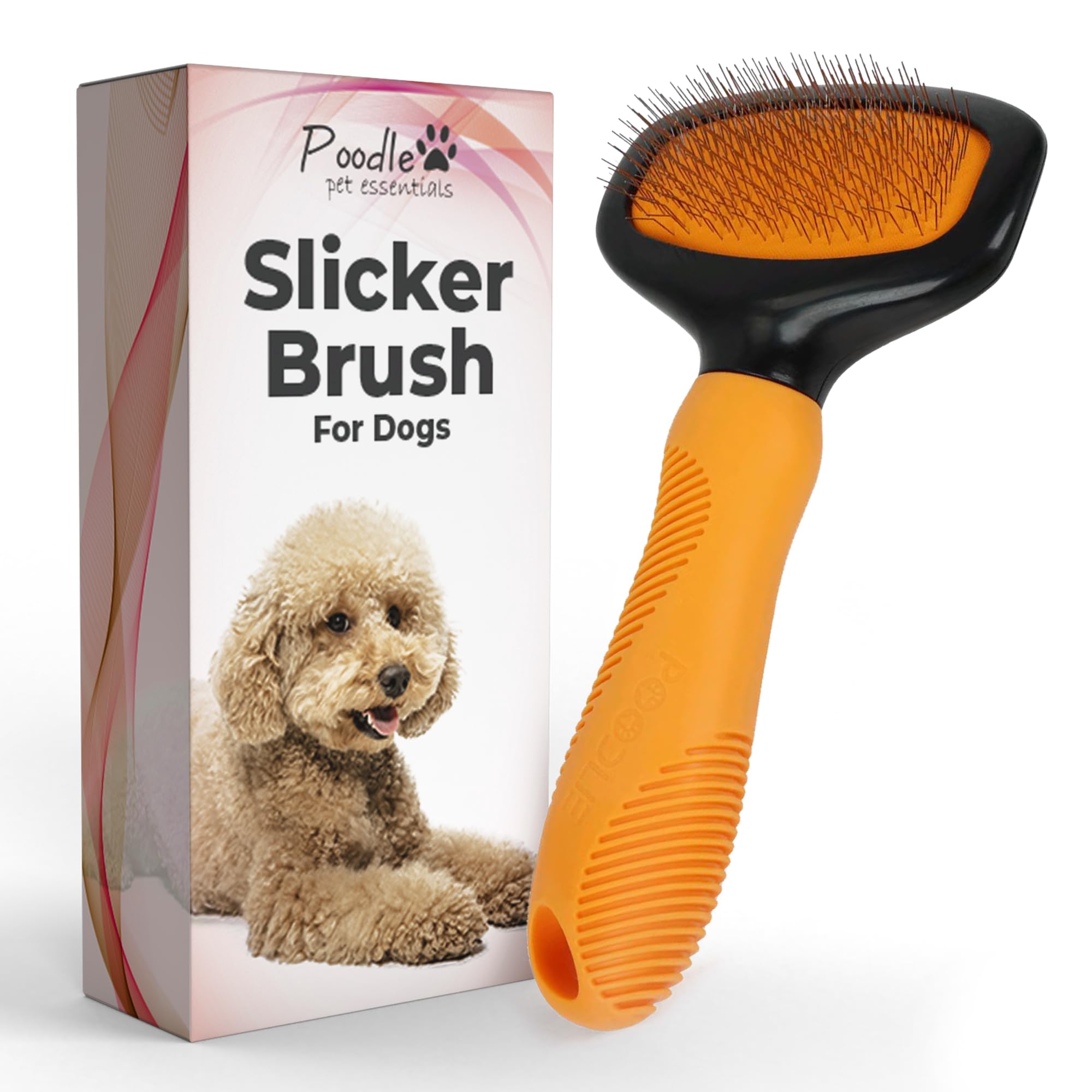 Poodle Pet Slicker Brush - For Dogs, Cats, Rabbits - Matted/Loose Fur, Knots - Suitable for Doodle/Goldendoodle Grooming and Shredding Short/Long Hair (Orange)