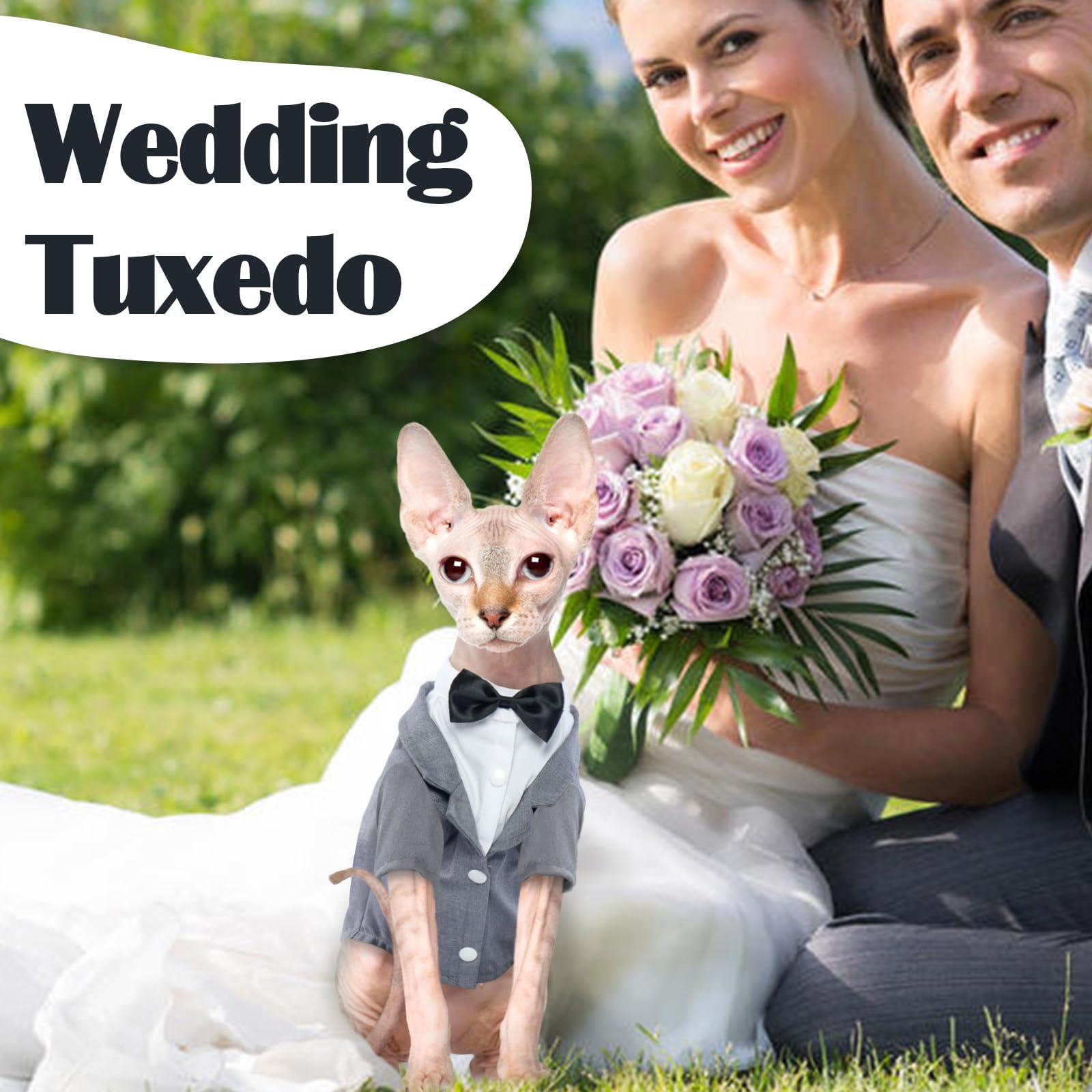 - Soft Cat Tuxedo Outfit: QBLEEV cat suit is made of cotton fabric that is super breathable and skin-friendly not stiff for cats. The craftsmanship of cat tuxedo is excellent and speically designed for cats only. Good fit for slender, long hairless cats
