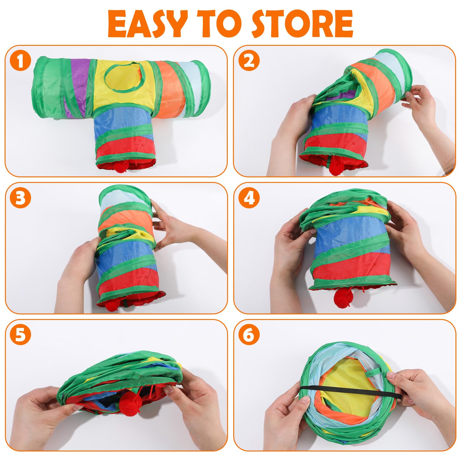 - CONVENIENT & DURABLE DESIGN:Tunnel folds flat for storage. Machine-washable fabric withstands frequent use. Easy to clean, quick-drying, and space-saving.