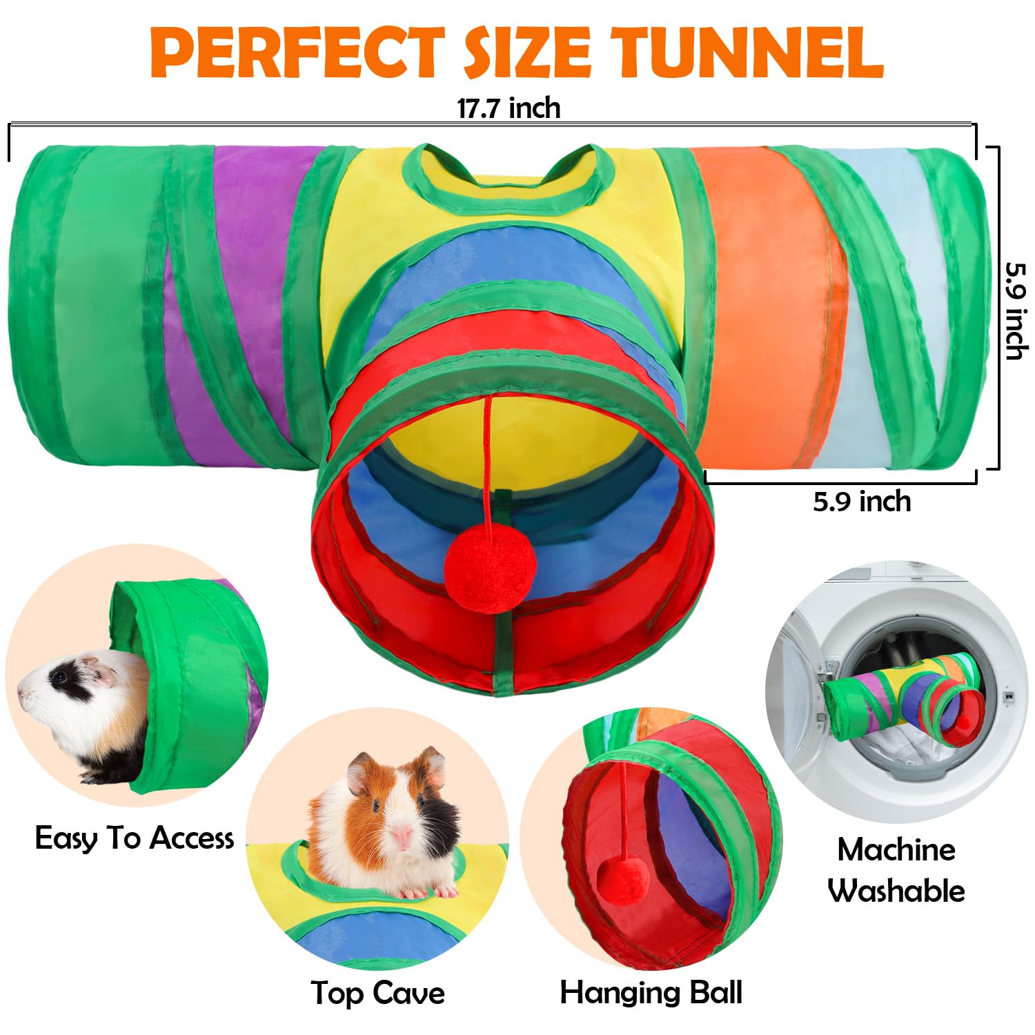 - ACTIVE PLAY & ENRICHMENT:Small animal tunnel is a perfect guinea pig hideout for little live pets to hide, exercise or sleep. Bunny toys for rabbits indoor can keep pet active and reduce boredom. Great choice of guinea pig playpen for your little friends.