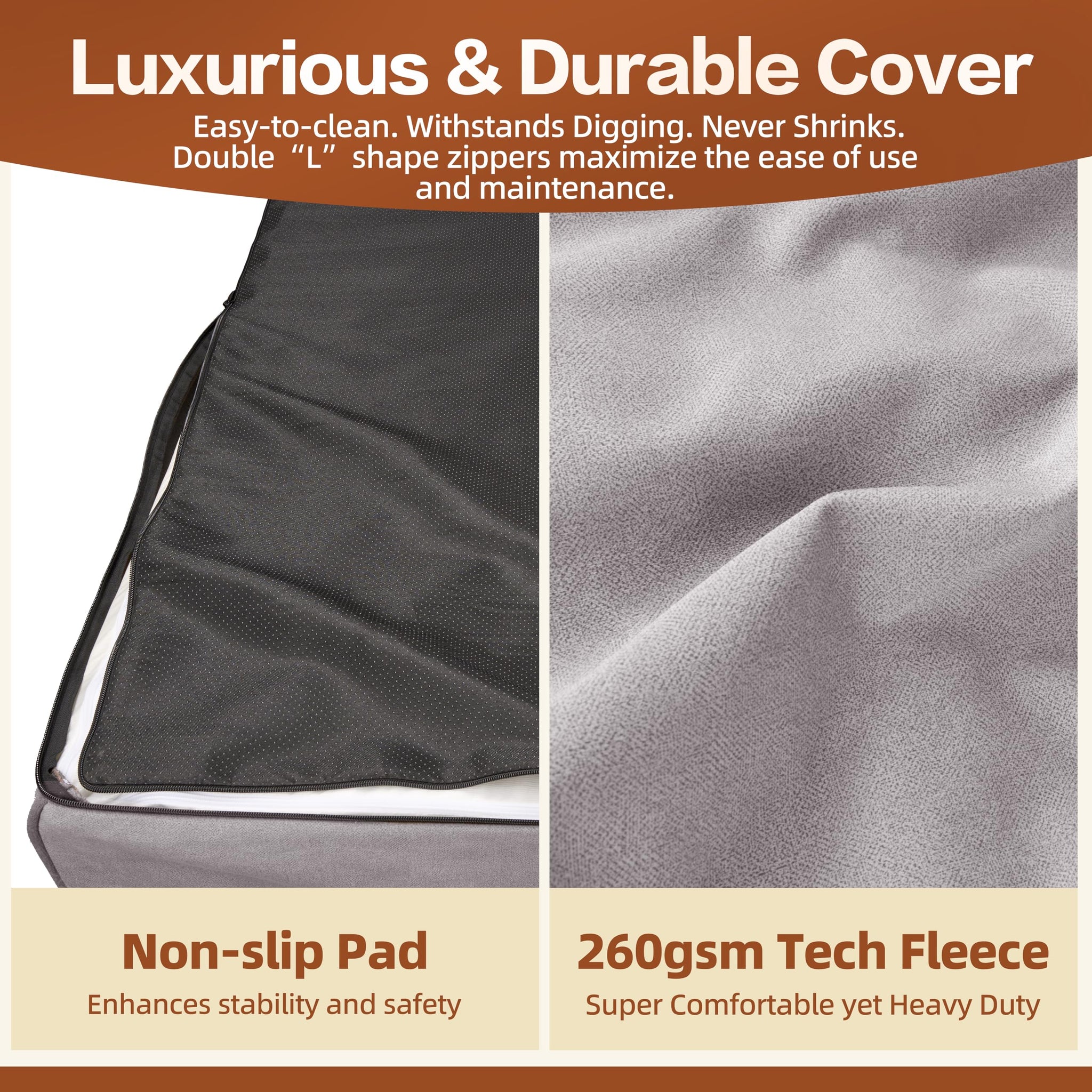 - Pet Safe Materials: Certified for safety and comfort, this dog bed features CertiPUR-US certified memory foam and OEKO-TEX standard 100 technical fleece, creating a secure and luxurious resting space. The non-skid bottom adds stability, preventing slips and ensuring your dog’s safety.