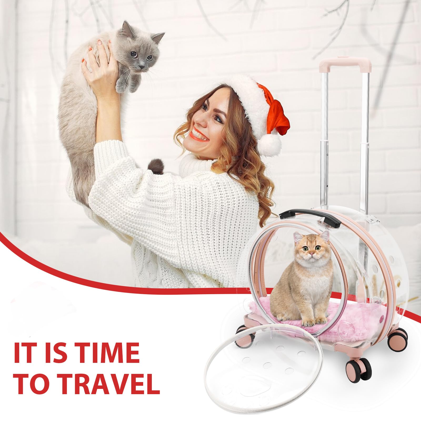 Transparent & Fully Breathable Hard cat Carrier with Rolling Wheels for Dogs, Cats, Multiple Carrying Options, Perfect for Traveling/Taking a Walk