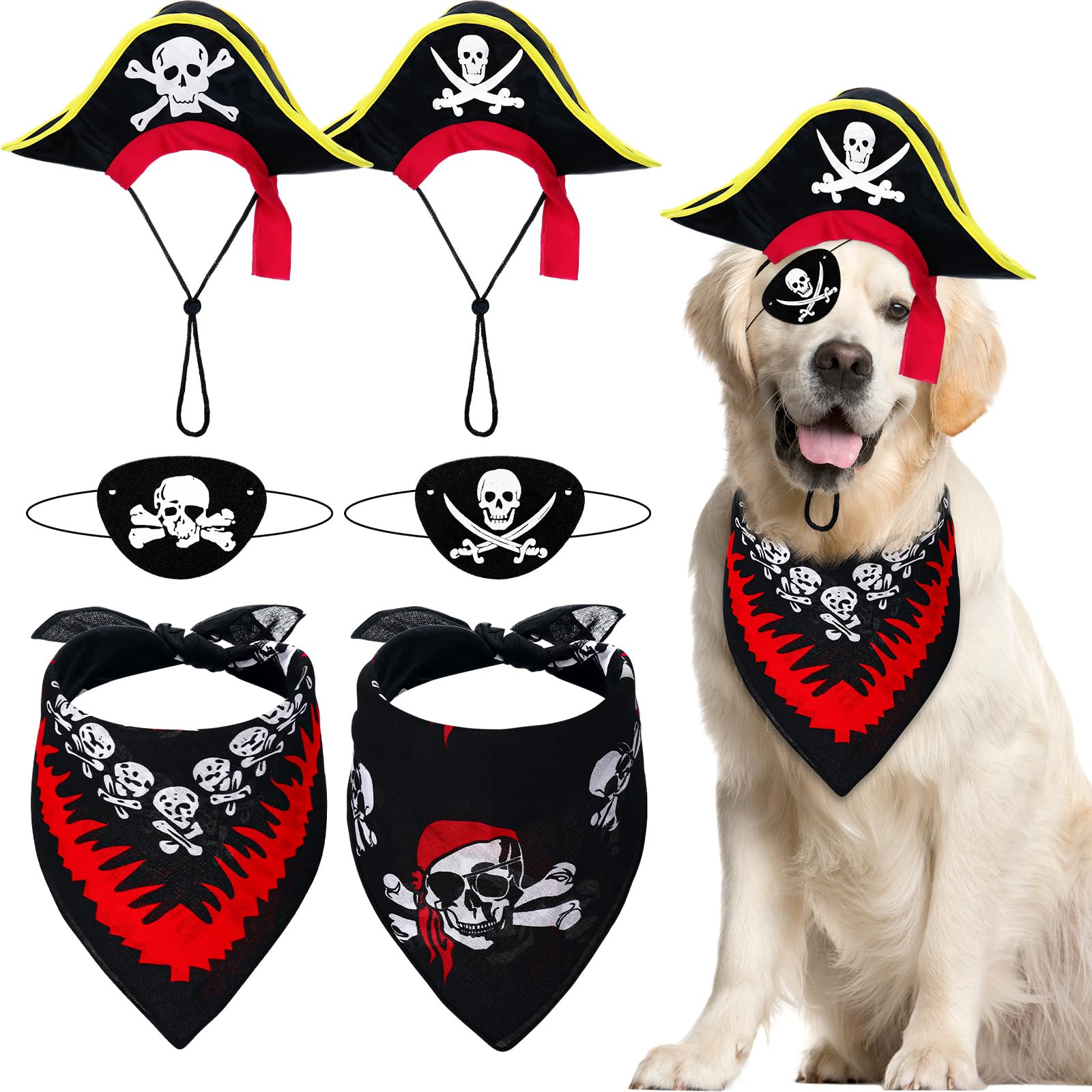 Complete pirate set includes hats, bandanas and eye patches to create instant dog pirate costumes without mixing accessories