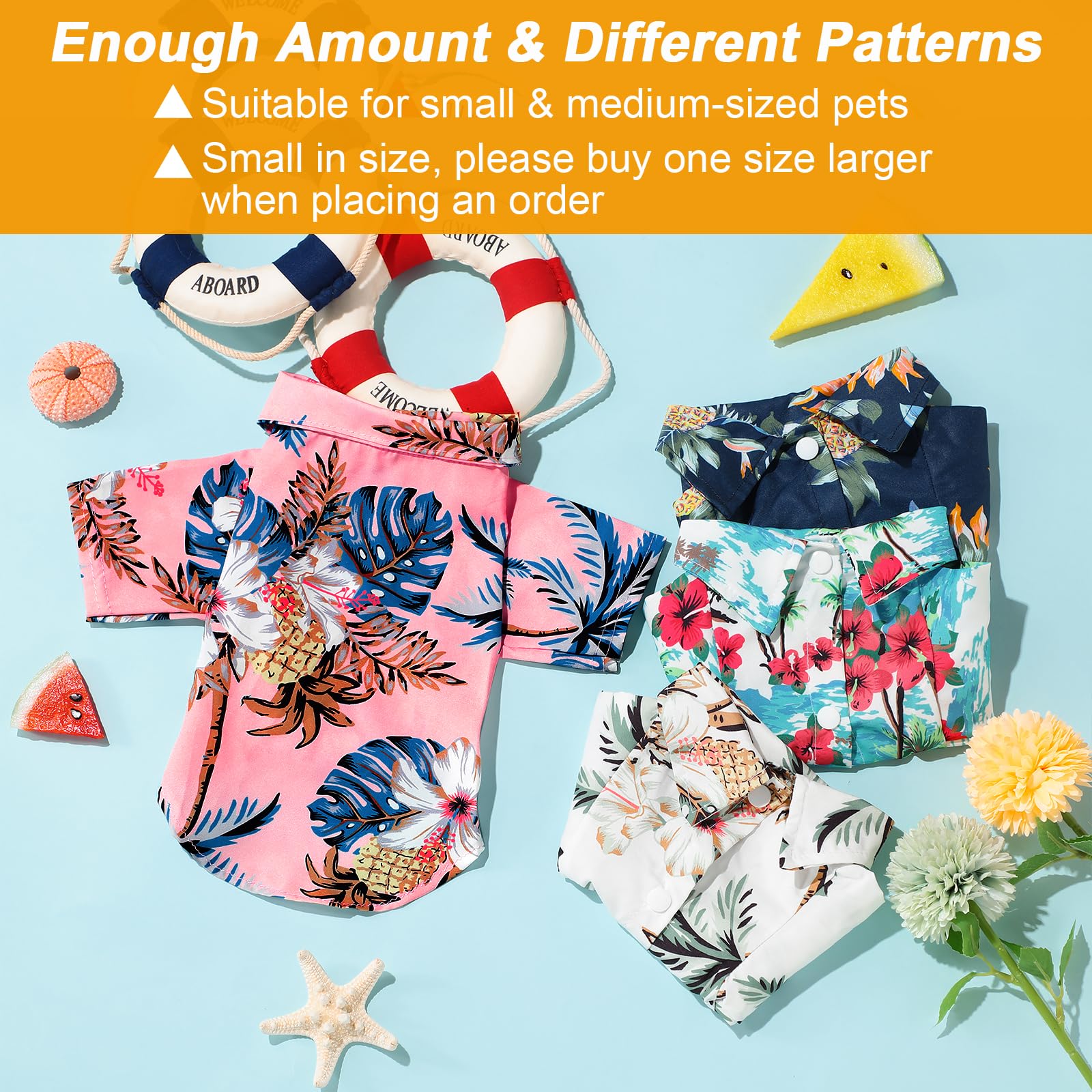 Weewooday 4 Pieces Small Pet Summer T-Shirts Hawaii Style Floral Pet Dog Shirt Breathable Cool Clothes Beach Seaside Puppy Sweatshirt for Puppy(Floral Style,X-Large)